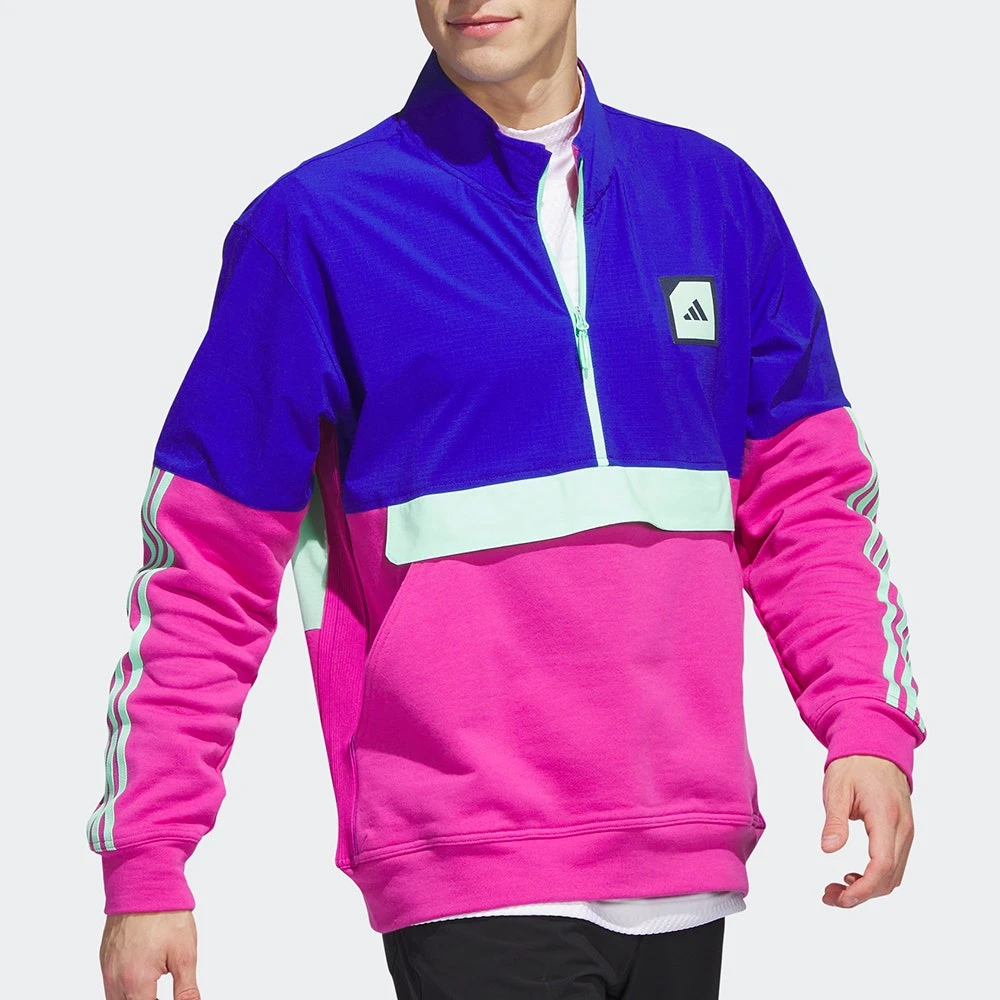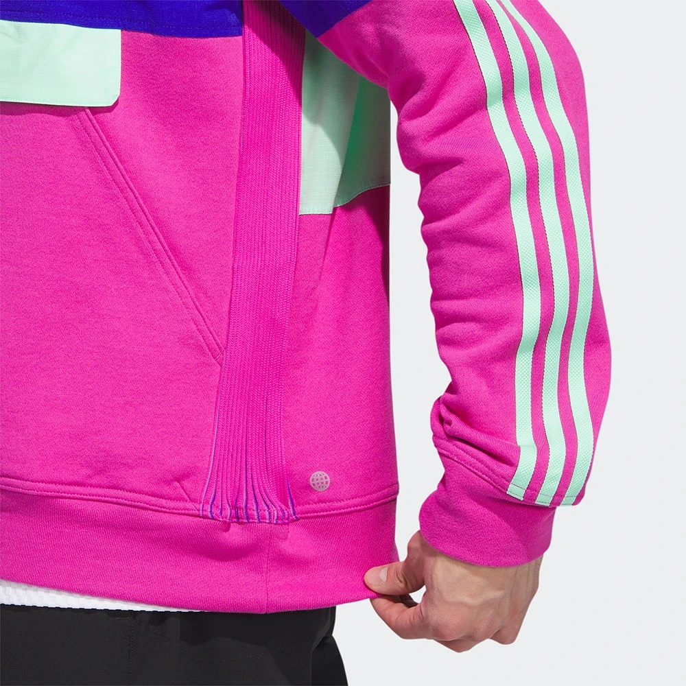 We love the versatility of the Adicross line from adidas golf which is designed to suit your active lifestyle while remaining purpose built for the demands of the modern golfer. This particular quarter zip silhouette marries two distinctive fabric types together in a perfect way. The fabric used through the upper is a ripstop style which will provide protection from the elements without compromising on performance, while the lower body & sleeve fabric is soft & cosy with a high degree of flexible stretch. Another great outerwear piece which could easily transcend into your off course looks this season.