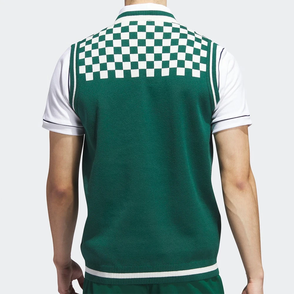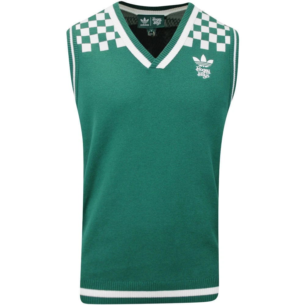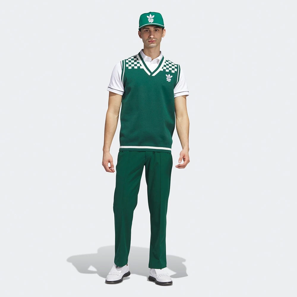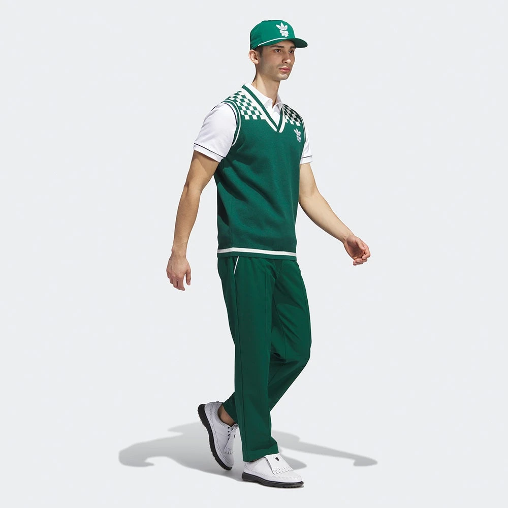 We love to see adidas collaborating with other upcoming golf fashion brands and this limited edition style has arrived from the highly anticipated adidas Originals x Bogey Boys capsule. This V Neck sweater vest makes use of a soft & cosy fabric – while the rib knit neckline & armholes provide comfort where you need it most. Collaborative branding featuring both the Trefoil & Bogey Boys logo is located on the chest – while the green & white checkerboard pattern provides a truly distinctive aesthetic for layering your looks. “Bogey Boys” is a golf clothing brand founded by rapper, singer, songwriter, global superstar & golf obsessive Macklemore – so you can be sure that this Originals x Bogey Boys golf mid layer will keep you looking fly & feeling legit on the golf course this season.