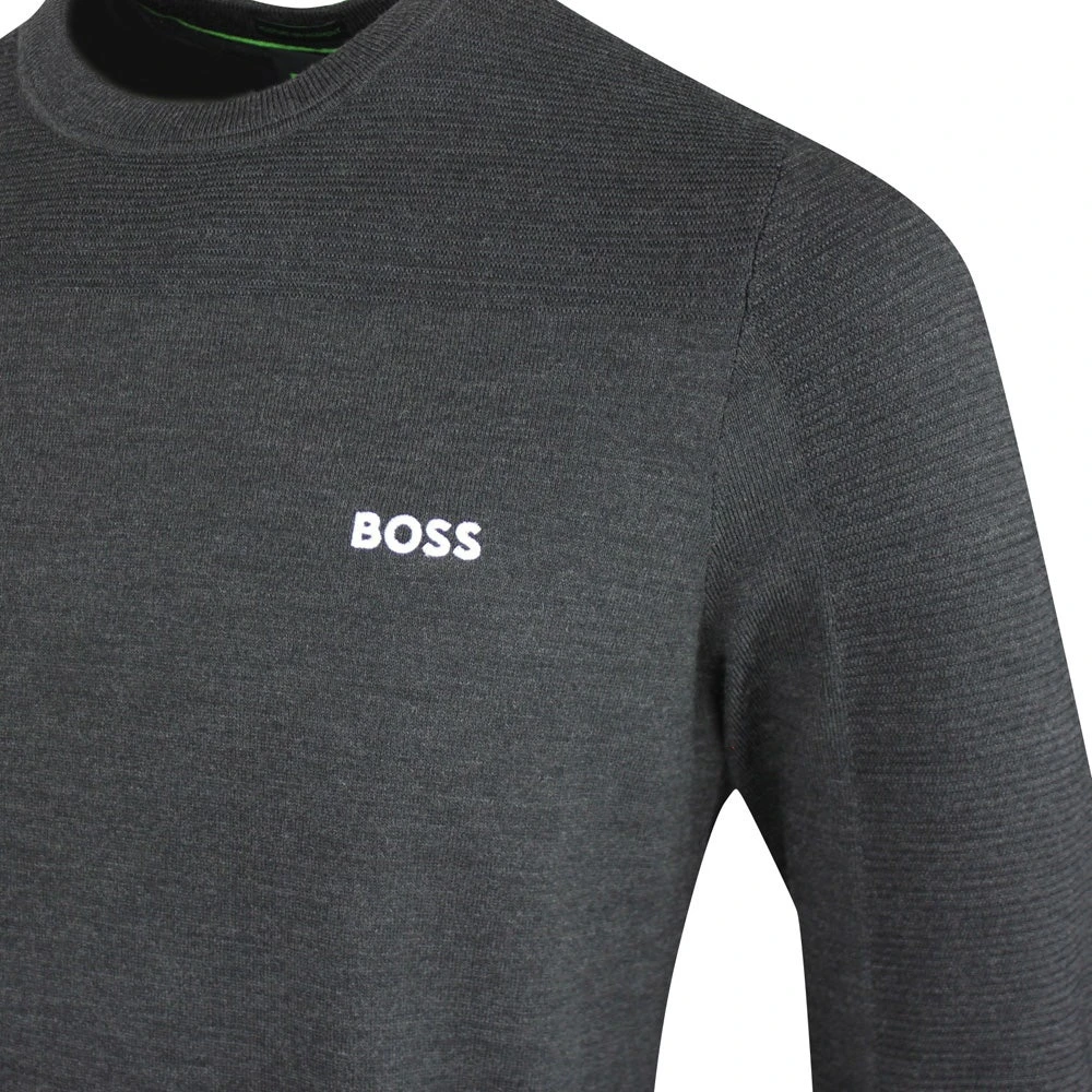 We love the look of this brand new BOSS crew neck knitwear style which is both timeless and versatile for wearing on & off the course this season. The fabrication has been crafted using a blend of special virgin wool and technical nylon for a super soft, high quality handle – while the naturally high stretch levels also ensure freedom of movement through the swing. The iconic BOSS logo is located at the left of the chest, while the additional structured details atop the sleeve, shoulders & yoke help to add texture for a sporty feel.