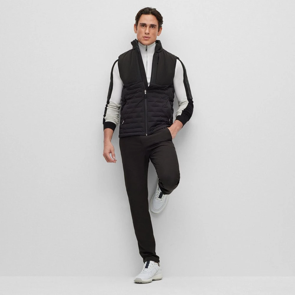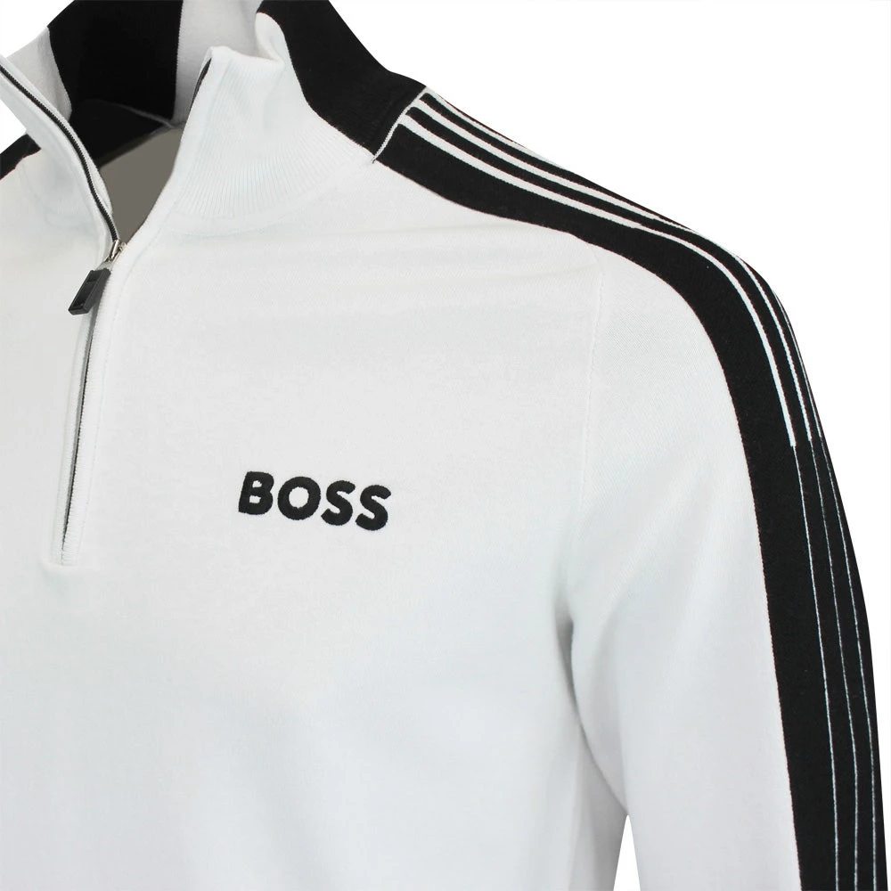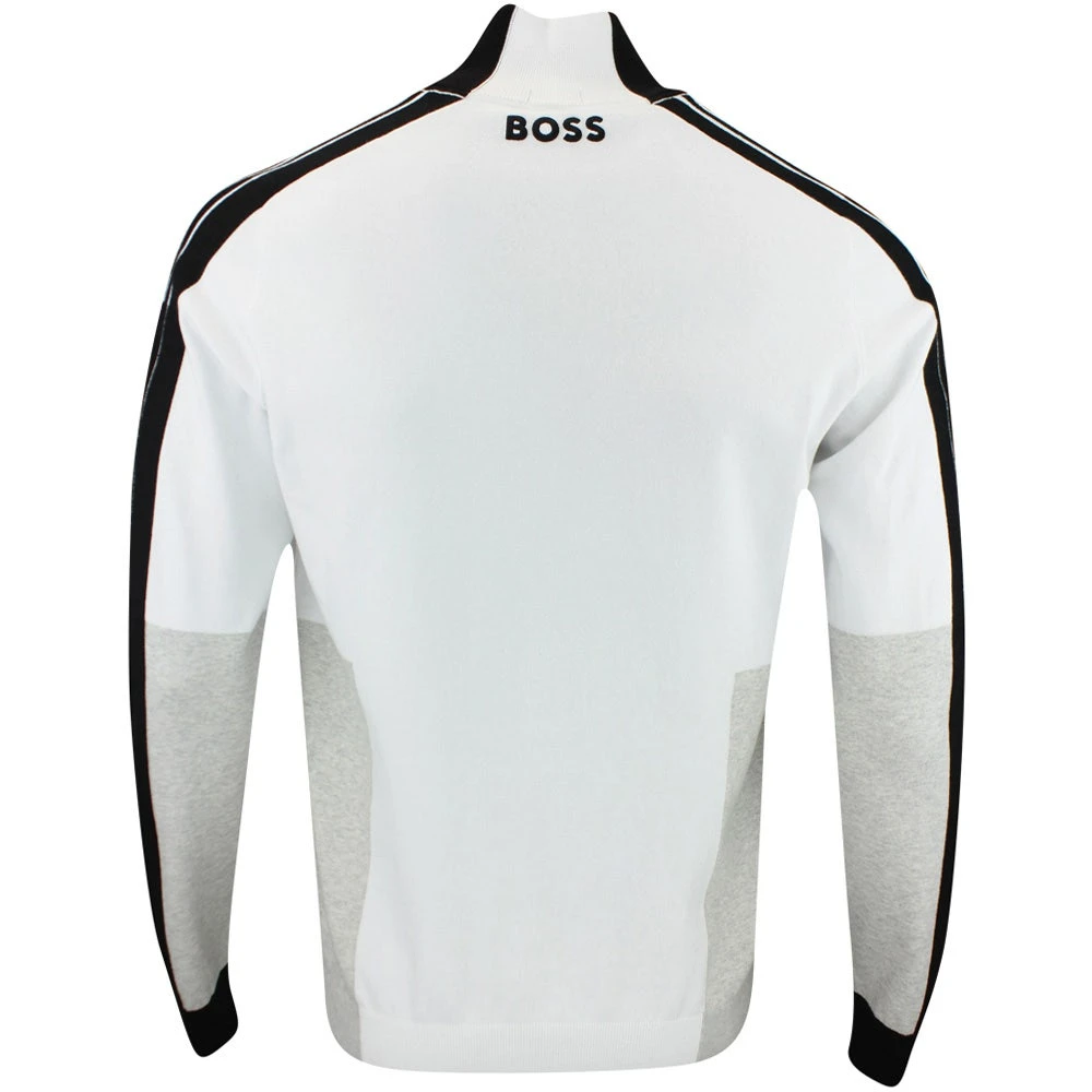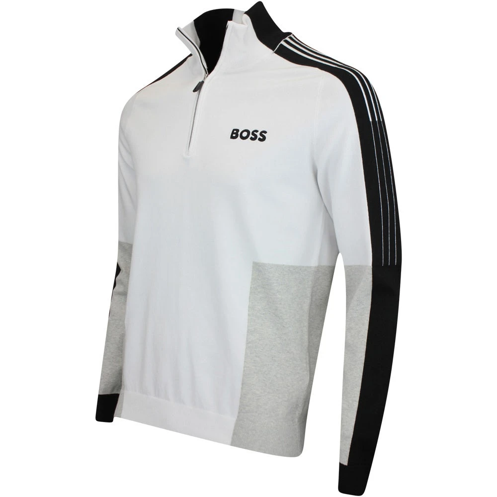This brand new BOSS Golf jumper is a welcome addition to the Fall ’23 collection and features all the key attributes that you would expect from a BOSS “Pro” edition knitwear style. It embraces a colour blocked design with multi stripe detailing at the shoulders & sleeves, a unique look which is especially effective in this colour combination and would suit perfectly both on and off the golf course this season. The invisible DWR coating on the fabric ensures longevity and functionality in a light rain shower, while the lightly ribbed hem and cuffs ensures an immaculate fit. Another excellent knitwear style which would be a worthy addition to your collection this season.