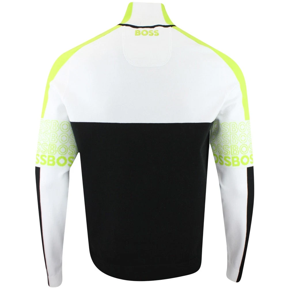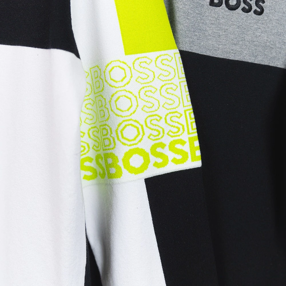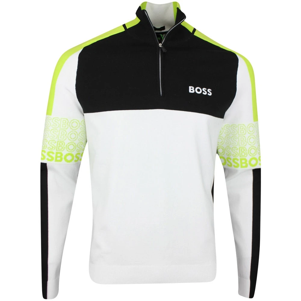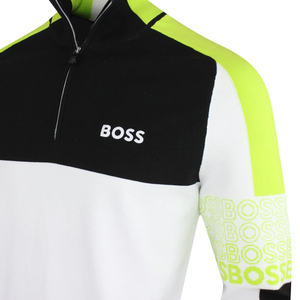 This brand new BOSS Golf jumper is a welcome addition to the Spring ’23 collection and features all the key attributes that you would expect from a BOSS “Pro” edition knitwear style. It features a unique colour blocked design with repeating logo detailing on the sleeves, a style which is especially effective in this colour combination and would suit perfectly both on and off the golf course this season. The invisible DWR coating on the fabric ensures longevity and functionality in a light rain shower, while the lightly ribbed hem and cuffs ensures an immaculate fit. Another excellent knitwear style which would be a worthy addition to your collection this season.
