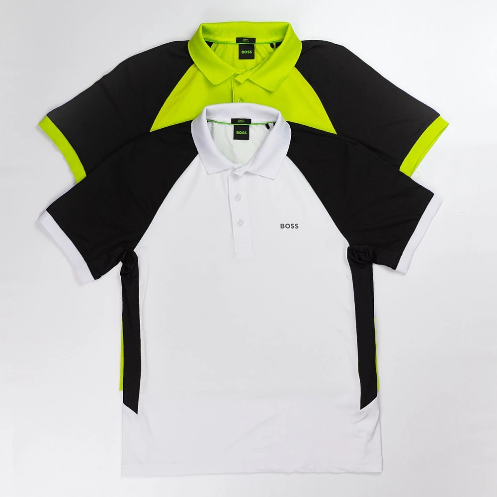 With the introduction of a new logo comes the introduction of a brand new Pauletech Pro golf shirt by BOSS – newly updated for Spring ’23. As a more technical version of the iconic slim fit Paule polo, the Pauletech will offer even more moisture wicking performance through the high quality single jersey fabrication, while the heightened stretch levels also offers an enhanced range of motion through the swing. This colour combination is very easy on the eye, finished with contrast raglan detail at the shoulders for a timeless and sporty look. First choice for the top BOSS ambassadors on tour and sure to become a wardrobe staple of many more stylish golfers this season.