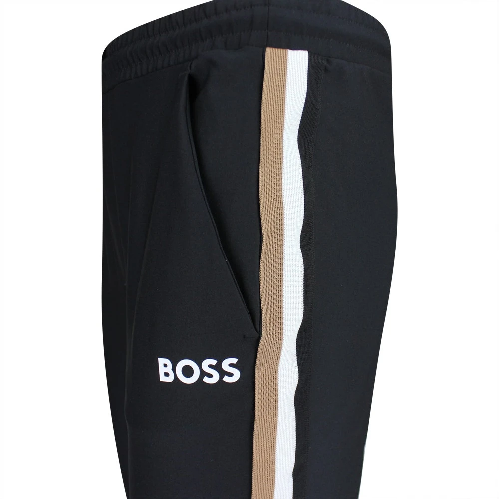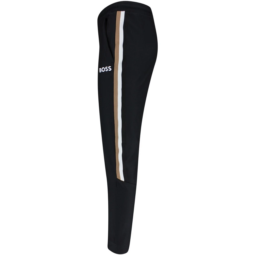These brand new BOSS sweatpants come from the limited edition Matteo Berrettini capsule and look ultra sporty in this iconic colour combination. The contrast logo couples well with the tri-colour stripe detailing at the outside legs, while the sporty look is rounded off perfectly by the cuffed ankles. The fabric is soft, stretchy & technical – providing both comfort & performance through the moisture wicking capabilities. Look out for the matching Sicon MB 1 full zip hoodie to complete the co-ord look this season.