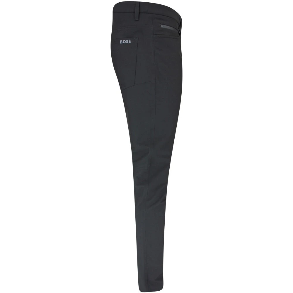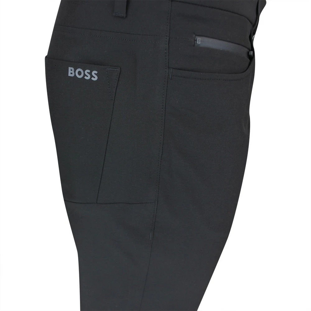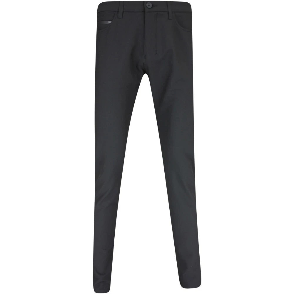 These brand new BOSS Golf trousers arrive from the Fall ’23 collection and offer complete comfort for wearing on or off the golf course this season. They make use of a “techlite” fabric with 4 way stretch & moisture wicking performance on the inside, while the DWR coating on the fabric will also bead off water for protection in a light rain shower. The “athleisure crotch” construction provides even more comfort where you need it most – while the slim fit silhouette is tapered through the leg for a modern look. Roll up the cuffs and you’ll find reflective trim detailing, while a subtle BOSS logo is located at the right hip. The five pocket design is complete with a zipped security pocket, while a traditional button closure & zip fly also feature. Timeless, versatile & one of the best value pant styles to have arrived from BOSS Golf.