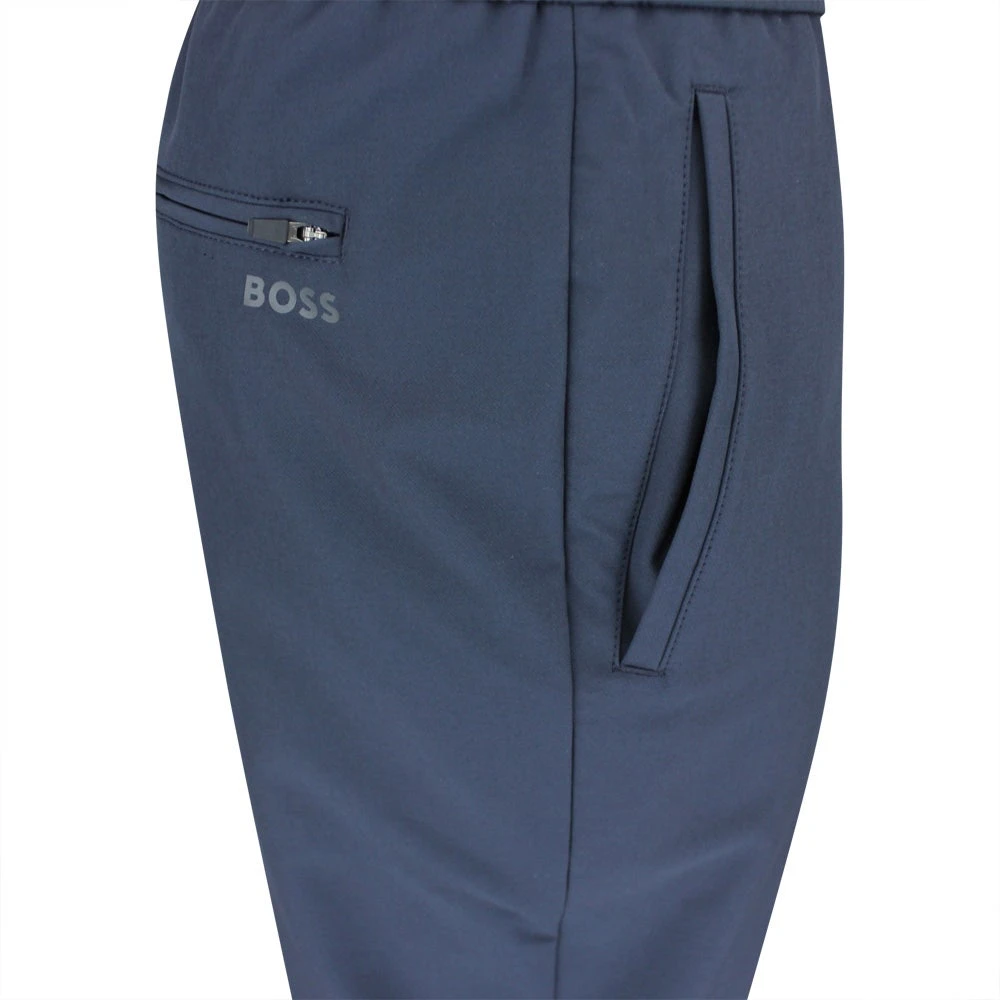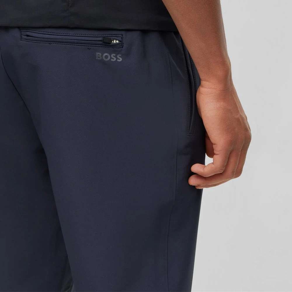 These smart BOSS golf joggers arrive from the Fall ’23 collection and offer complete comfort & performance on the golf course this season. The slim fit silhouette is complemented by the partially cuffed ankles for a modern and stylish look without feeling restrictive, while the introduction of an “athleisure crotch” construction provides even more comfort where you need it most. The “flex” jersey fabric is smooth to the touch and emphasizes the quality of the pants, while the high stretch waistband features waist ties for a secure and comfortable fit Another timeless, reliable & versatile golf pant which makes great use of a new & improved fabric.
