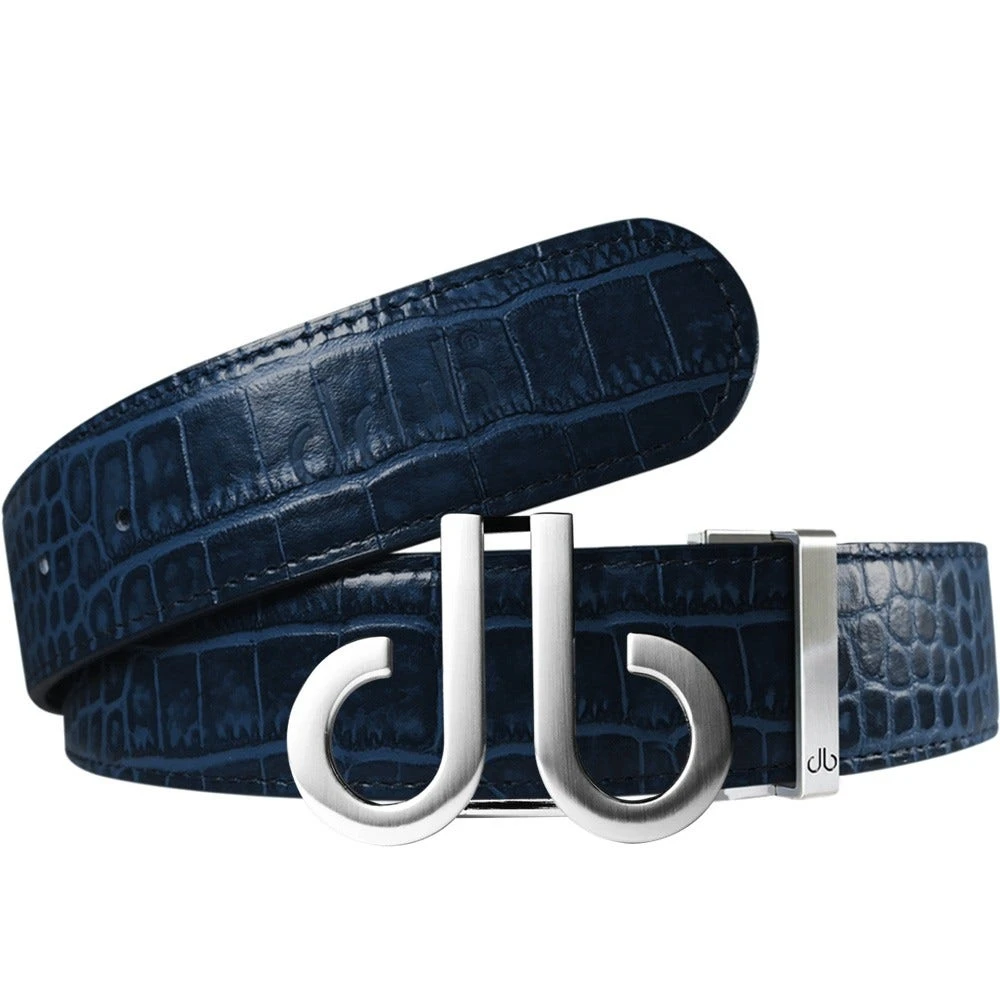 Crocodile textured leather golf belts are incredibly popular from Druh and we love this new Tour Collection style, finished in navy blue. This Tour golf belt is one size fits all and also comes with two interchangeable belt buckles – simply remove the buckle and trim the leather strap to the exact size you require.