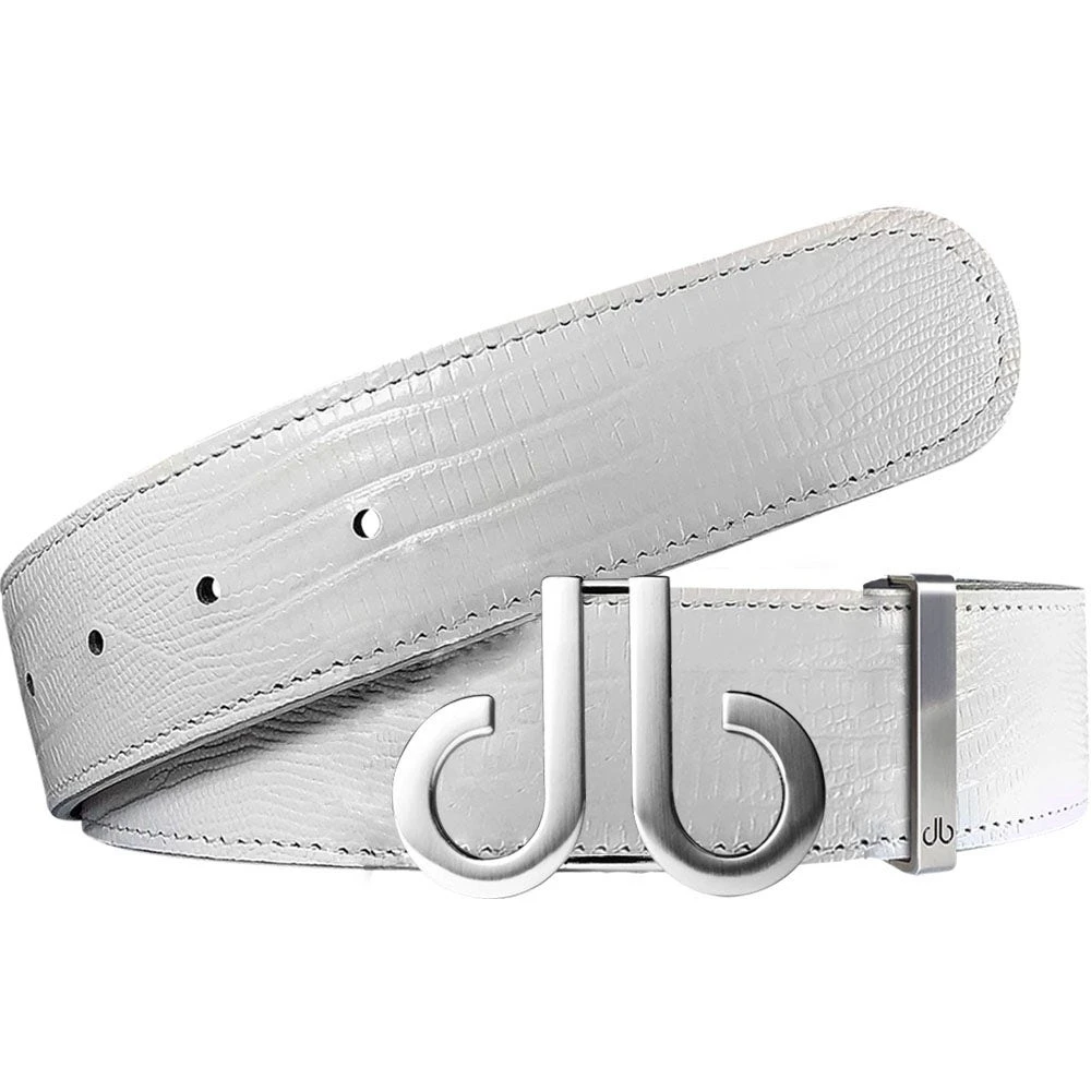The new Druh belts collection features the return of the popular Lizard textured leather and this style is finished in pure white with two choices of buckles to suit. Druh leather golf belts are made with superb quality, providing reliability and the desired tour look on the golf course this season.
