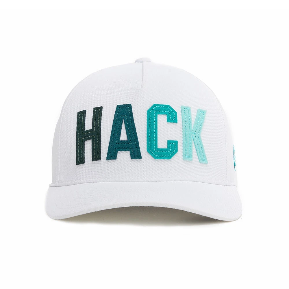 Bold slogan snapback caps have become one of the biggest trends in golf wear and we love this new option from G/FORE for 2023. “HACK” is the slogan located on the front – a golfing term relatable to many of us – this time finished in a multi coloured combination which offsets the base colour perfectly. The cap itself features a moisture wicking sweatband and breathable eyelets to ensure maximum comfort, while the five panel Flexfit 110 silhouette is a tried and tested style which is used throughout the G/FORE headwear line up. Improve your accessories game with this brand new G/FORE golf cap – sure to be a popular style throughout the season.