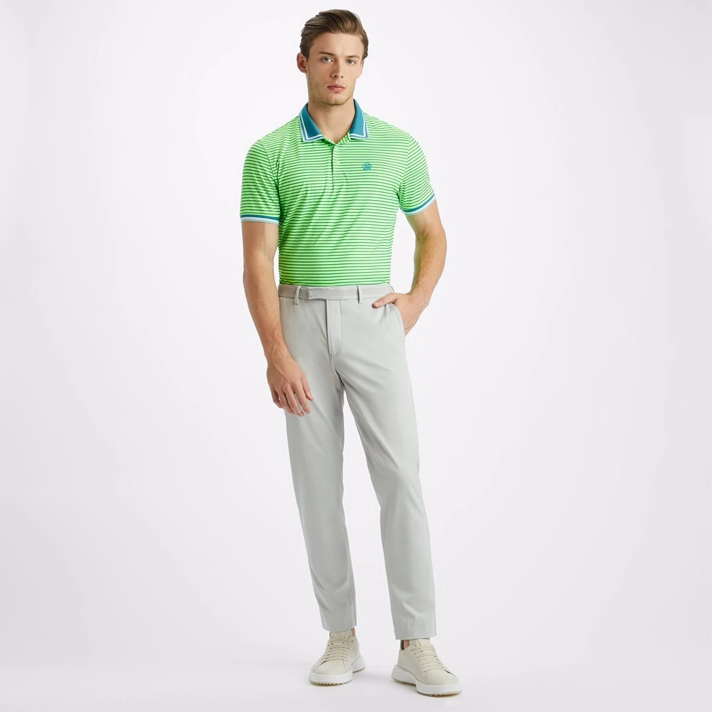 G/FORE are at the top of their game when it comes to polo shirts and this particular style offers more than first meets the eye. That’s because you’ll find a hidden “Skull & T’s” logo at the rear, integrated between the yarn dyed stripes for a truly distinctive look this season. The rib knit collar & cuffs are married together by a same trio of colours, complete with a three button placket for custom coverage. The soft jersey fabric features a high degree of stretch for maximum comfort in performance, while the moisture wicking nature of the fibres will leave you feeling cool and dry on the inside too. Another fashionable and eye catching style from one of the best golf brands around.