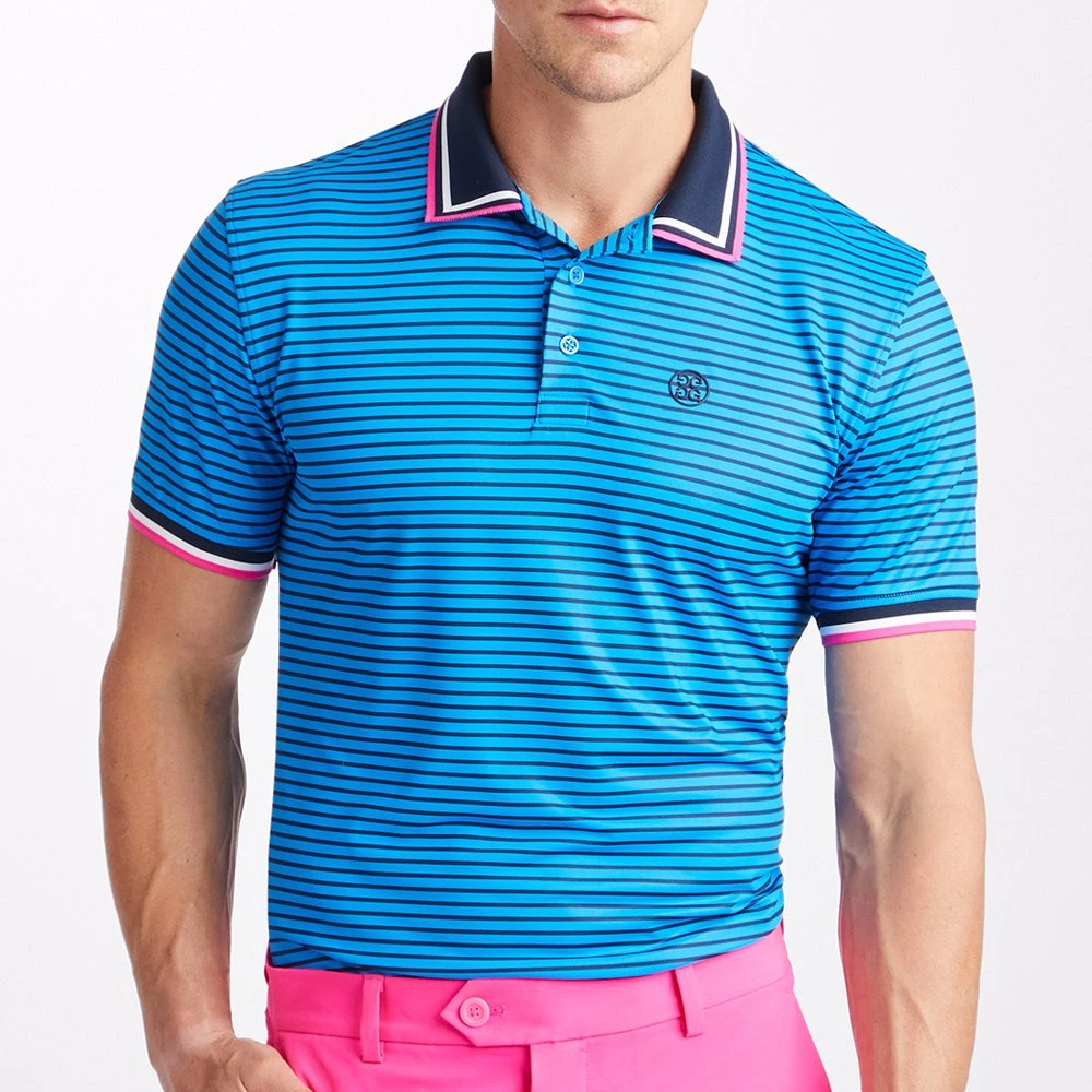 G/FORE are at the top of their game when it comes to polo shirts and this particular style offers more than first meets the eye. That’s because you’ll find a hidden “Skull & T’s” logo at the rear, integrated between the yarn dyed stripes for a truly distinctive look this season. The rib knit collar & cuffs are married together by a same trio of colours, complete with a three button placket for custom coverage. The soft jersey fabric features a high degree of stretch for maximum comfort in performance, while the moisture wicking nature of the fibres will leave you feeling cool and dry on the inside too. Another fashionable and eye catching style from one of the best golf brands around.