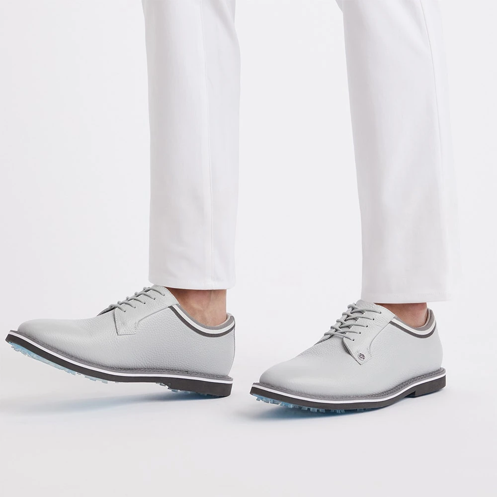 G/FORE Gallivanter golf shoes are among some of the most stylish in the game with a clean and classic look to match with almost any golf outfit this season. The full grain pebble leather is soft and supple with waterproof protection for peace of mind, while the computer engineered outsole offers optimal traction in all conditions. Comfort is enhanced with the Ortholite sock liner and the moulded EVA midsole, while an internal lining helps to improve breathability in warmer conditions. This brand new Grosgrain Gallivanter style features a two tone ribbon effect at the top of the ankle collar – a fashionable and timeless update for this popular silhouette.