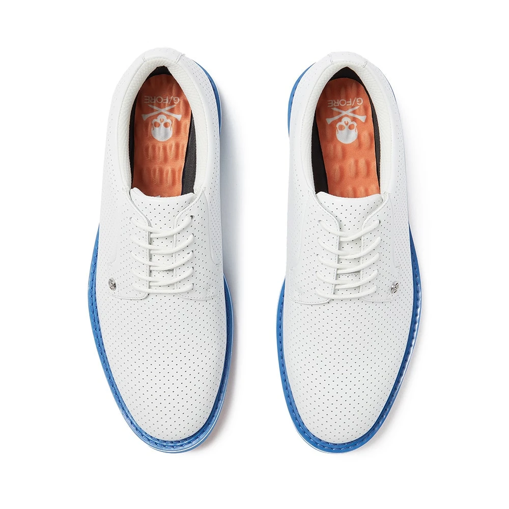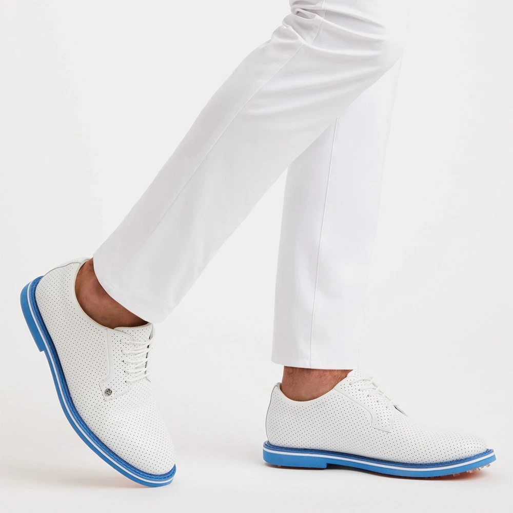 G/FORE Gallivanter golf shoes are among some of the most stylish in the game with a clean look to match with almost any golf outfit this season. The newly updated perforated leather upper is smooth, soft and supple with waterproof protection for peace of mind, while the computer engineered outsole offers optimal traction in all conditions. Comfort is enhanced with the Ortholite sock liner and the moulded EVA midsole, while an internal lining helps to improve breathability in warmer conditions. We love the key styling updates on this timeless & popular silhouette – perfect for adding that extra touch of style into your looks on the golf course.
