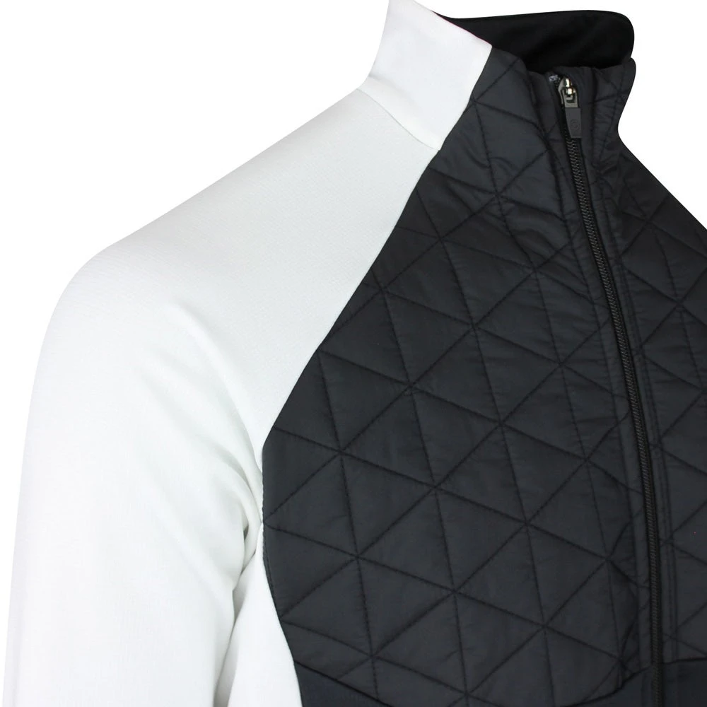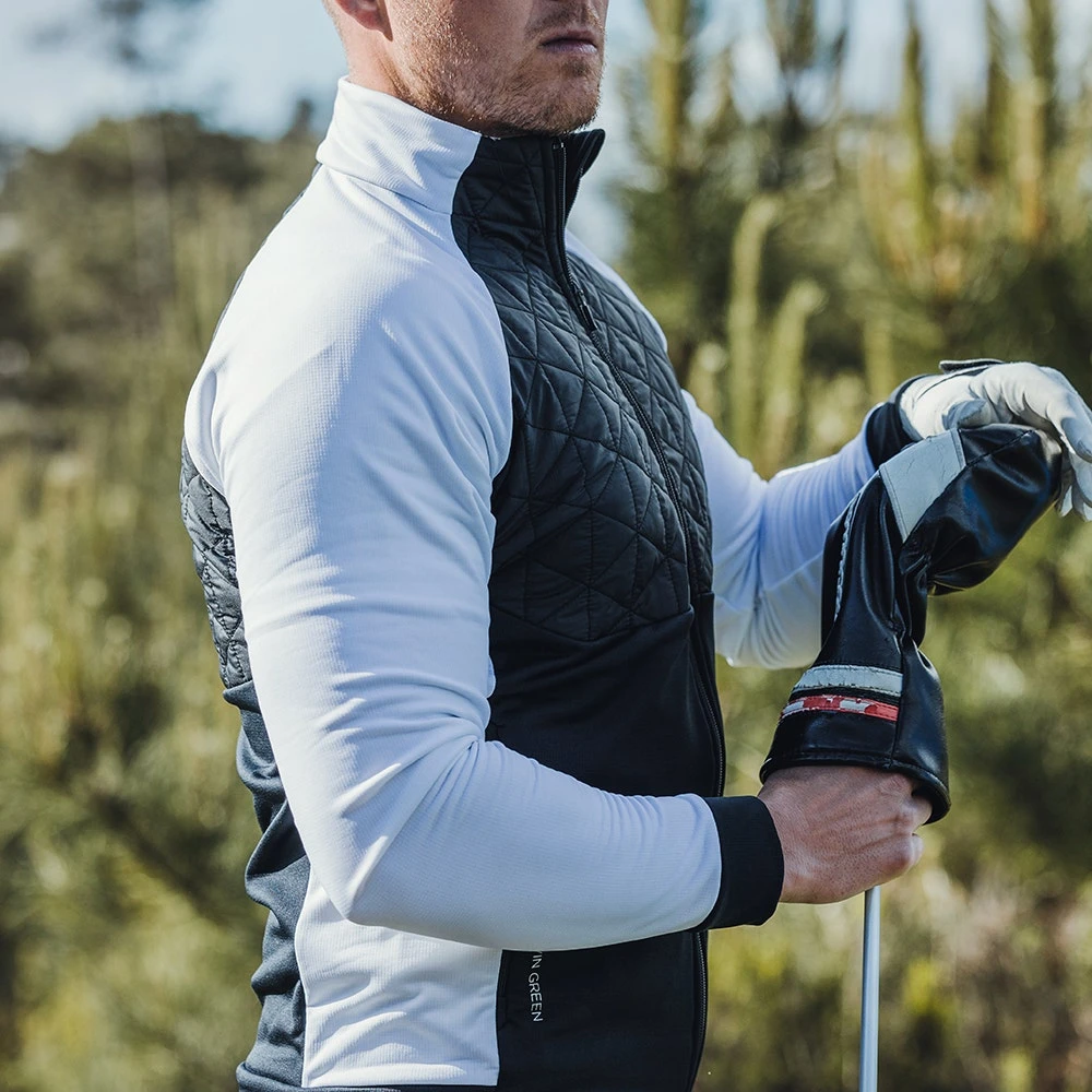 Galvin Green Insula golf jackets offer lasting warmth, comfort & thermal regulation thanks to the built-in air chambers which retain body heat without adding any extra bulk to the garment. The Insula fabric is also soft to the touch with a high degree of stretch to further enhance your comfort levels while also ensuring freedom of movement through the golf swing. This brand new full zip style features lightweight Thermore quilted panels at the upper chest and rear for even more warmth retention – a detail which also elevates the sporty aesthetic appeal of the style. The full zip Dexter jacket is Bluesign approved and made using recycled polyester in Galvin Green’s continued commitment to sustainability.
