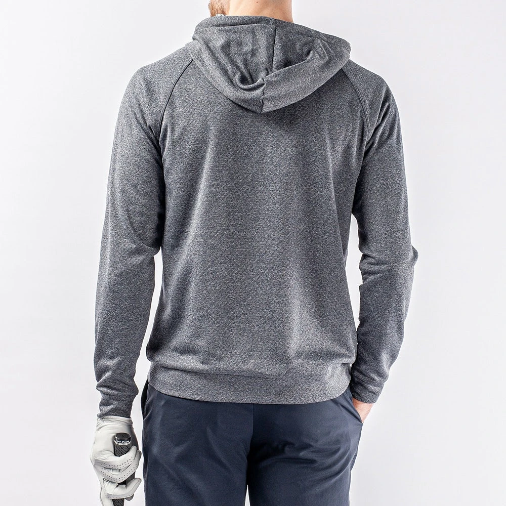 Galvin Green are experts when it comes to cold weather styles and we love the “Desmond” hoodie which has arrived for AW23. It makes use of a hooded pullover silhouette for a super sporty look, perfect for wearing both on and off the golf course this season. Galvin Green have incorporated their tried & tested Insula fabric with this brand new style – offering pure lightweight comfort, warmth and stretchy comfort. The style factor is increased thanks to the melange effect through the fabric, while the unique take on the Galvin Green roundel logo is matched by additional branding on the left sleeve.