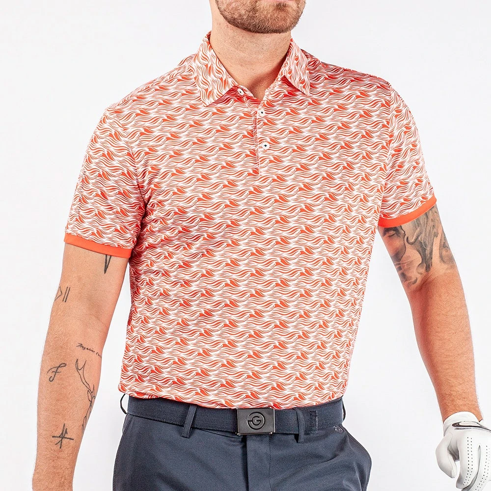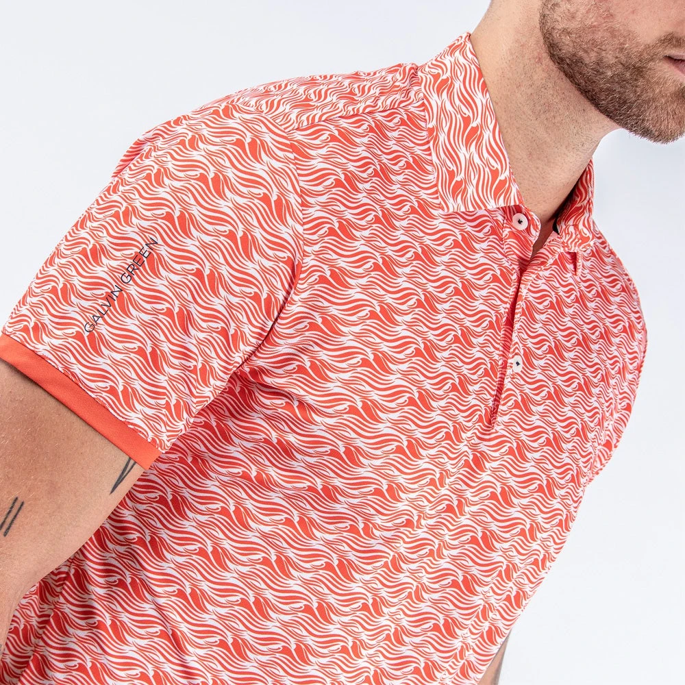 This brand new Galvin Green golf polo shirt makes excellent use of the acclaimed Ventil8+ technology to offer lightweight comfort with exceptional moisture managing capabilities. This is provided through the active dispersion of moisture across a widespread area, allowing for rapid cooling and quick drying performance. The all over yarn dye graphic really does catch the eye in this particular colour combination – helping to make this a worthy addition to your wardrobe.