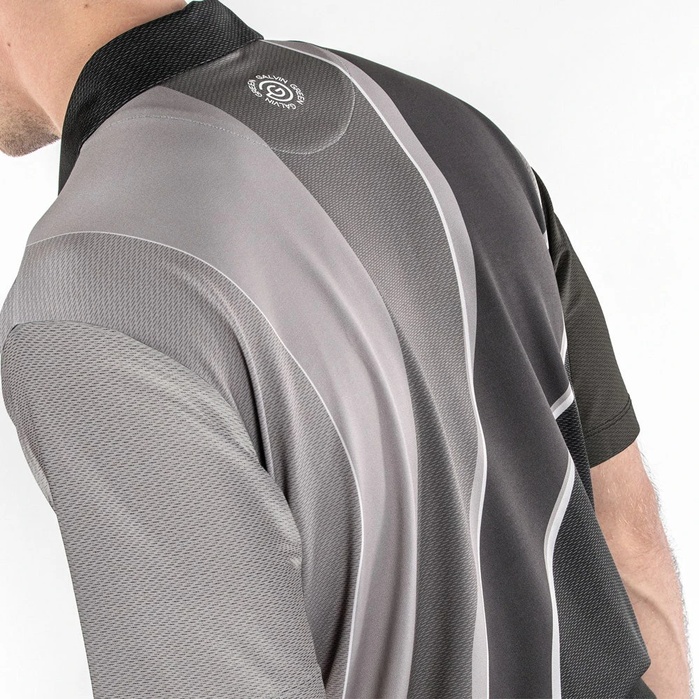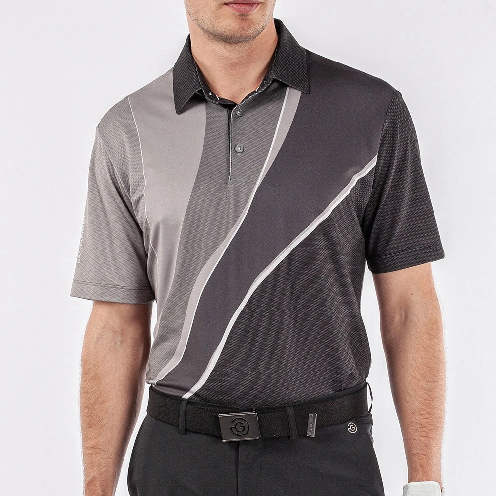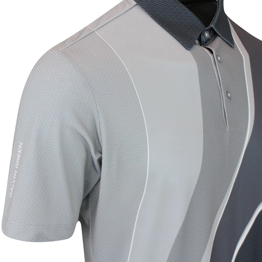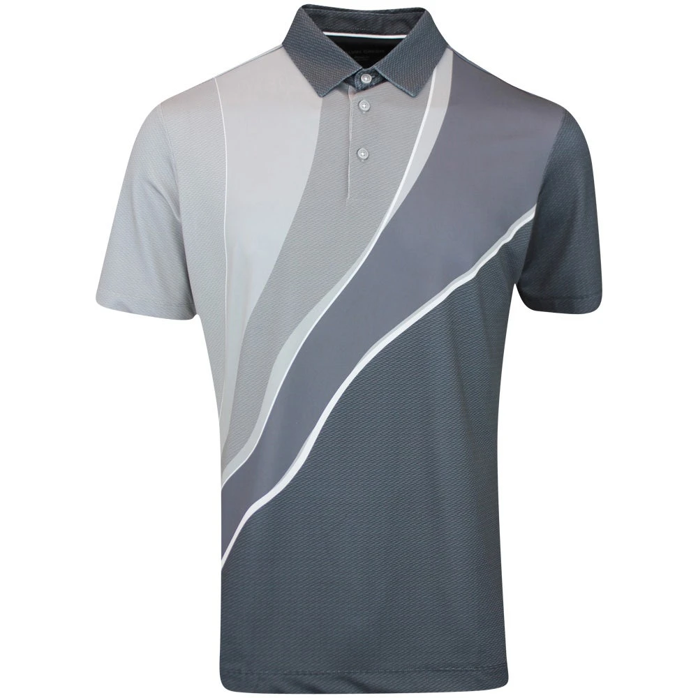 This brand new Galvin Green golf polo shirt makes excellent use of the acclaimed Ventil8+ technology to offer lightweight comfort with exceptional moisture managing capabilities. This is provided through the active dispersion of moisture across a widespread area, allowing for rapid cooling and quick drying performance. The all over wave-themed graphic really does catch the eye in this particular colour combination – helping to make this a worthy addition to your wardrobe.