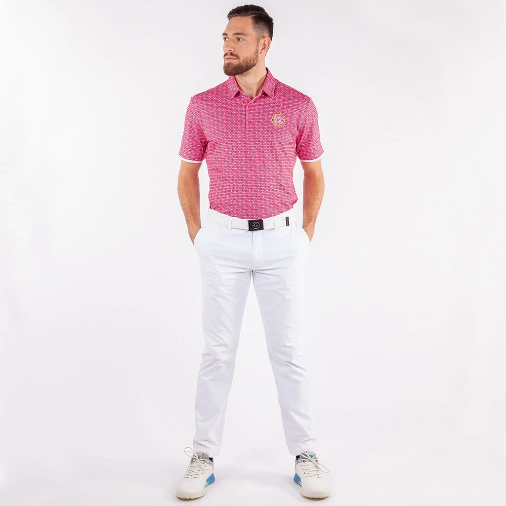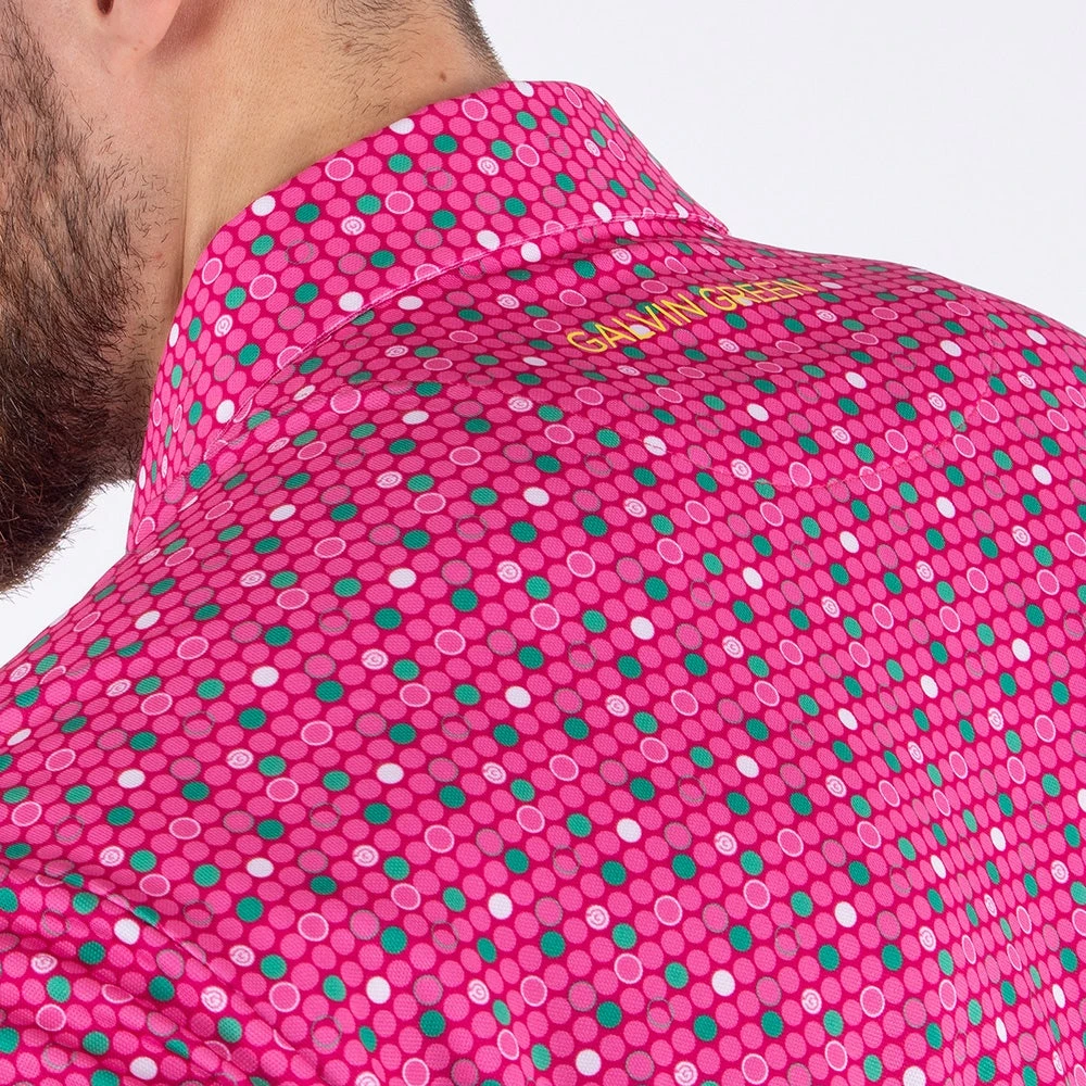 Ahead of this year’s opening major championship, Galvin Green have introduced this limited edition Ventil8+ polo shirt which make excellent use of the colour palette synonymous with one of the most famous sporting events in the world. The highly acclaimed Ventil8+ technology ensures lightweight comfort with exceptional moisture managing capabilities, perfect for wearing when the temperatures are heightened this season. The all over geometric print really does catch the eye in this particular colour combination – complete with miniature “G” logos scattered throughout the micro-dot effect. Definitely one of our favourite polo shirt styles to come from Galvin Green, especially in this celebratory colour combination.