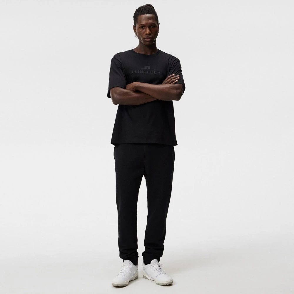 J.Lindeberg is one of the most fashionable golf brands around and the new Alpha athleisure line up crosses over between their ski, fashion & golf collections. This jogger is a sweat pant style which has a classic cotton handle and comes finished with a brushed interior for added warmth, while the natural stretch levels provide comfort and freedom of movement. A drawstring cord helps you to find your perfect fit, while the soft rib knit on the ankle cuffs provides that classic sweat pant look. Great value for adding into your off course wardrobe this season.