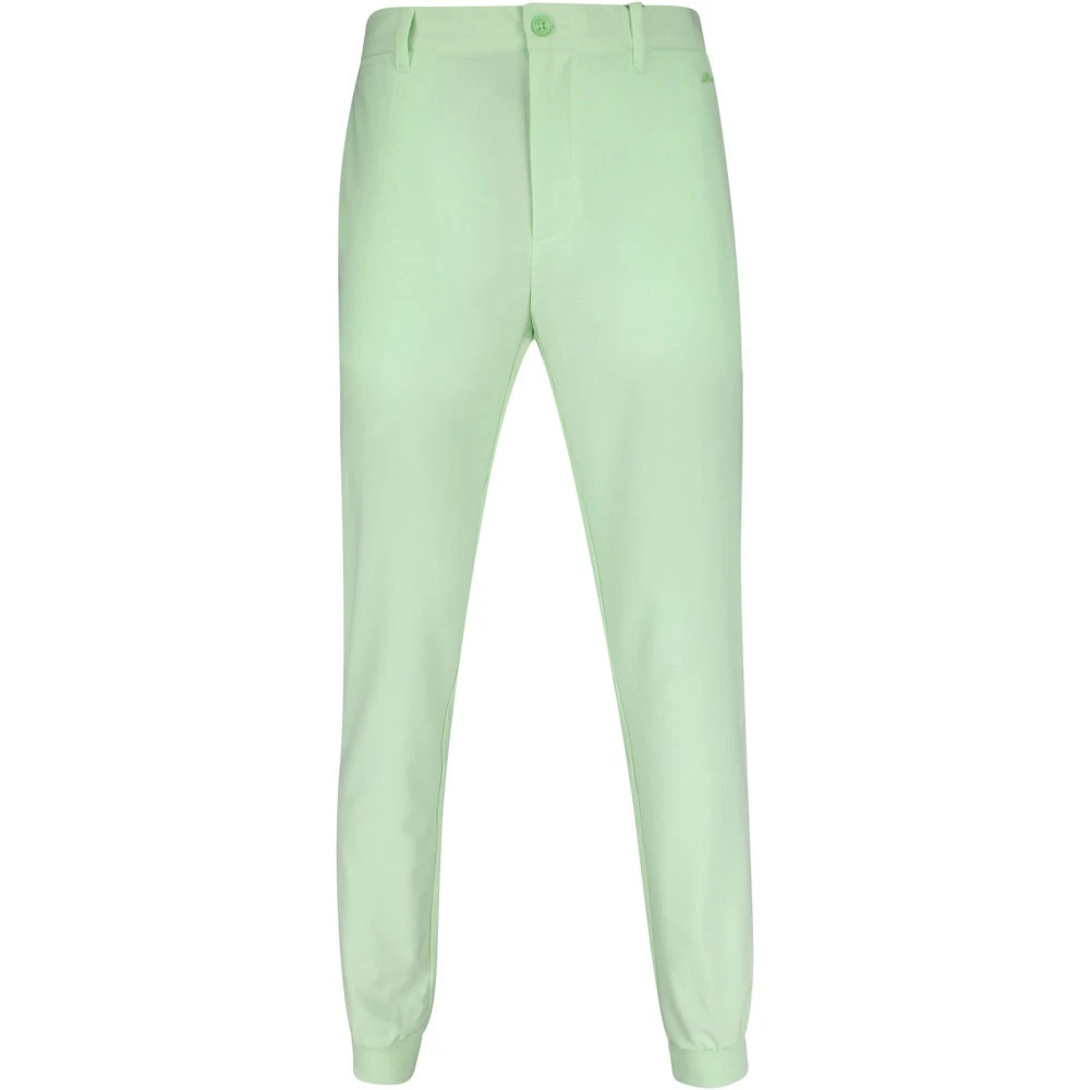Introducing one of the best golf trousers in the game today – the J.Lindeberg Performance Cuffed Jogger Pant. Brand new for 2023, these smart golf joggers embrace one of the hottest trends in golf wear and boast immaculate attention to detail throughout. First of all, the newly updated stretchy rib knit cuffs sit comfortably around the ankle for that signature jogger look – while the inclusion of leg length options minimises any unsightly bunching of excess fabric. The buttoned fastening, zip fly & belt loops retain a smarter overall look – while the iconic JL Bridge is also located above one of the rear pockets. The Micro High Stretch fabric offers four way stretch for flexible comfort where you need it most, while the DWR coating also means that rain droplets will bead off and dry quickly. Breathable, comfortable and fashionable – probably the best value jogger pant in the game right now.