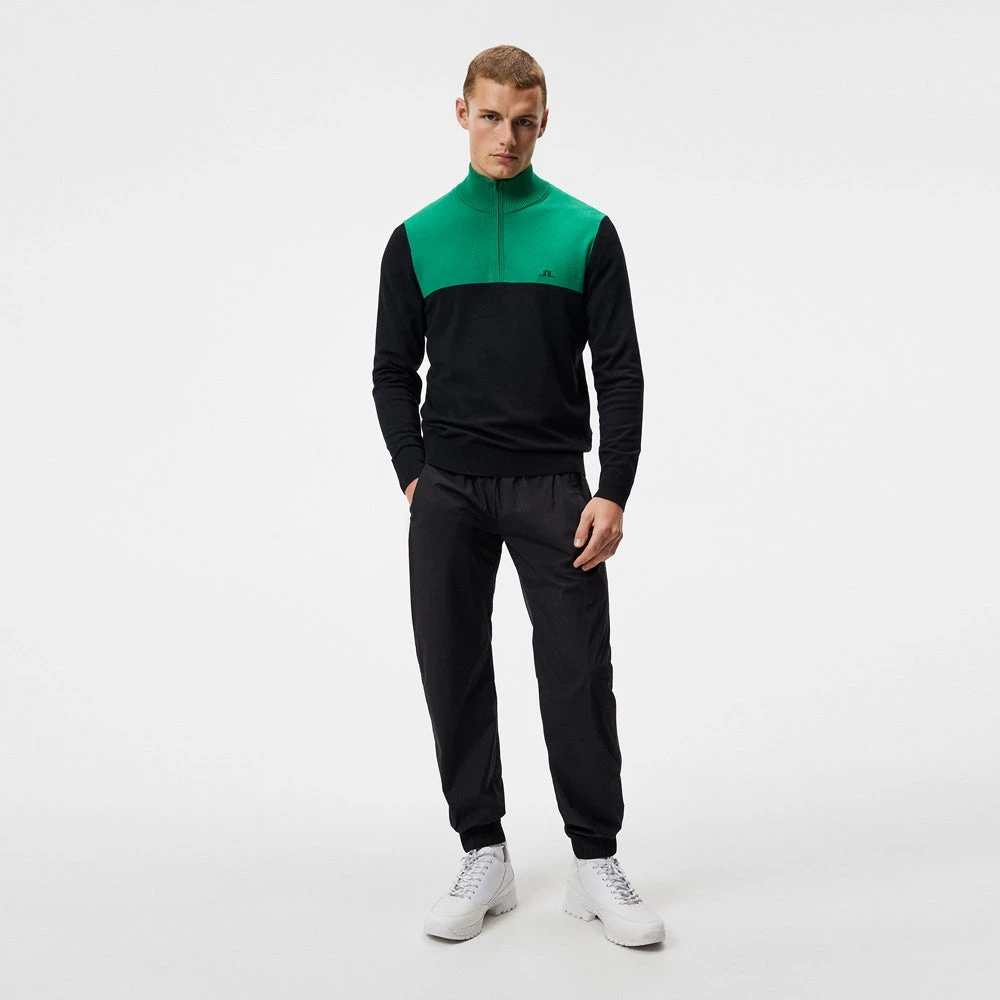J.Lindeberg is a brand which excels when it comes to knitwear and this quarter zip sweater has the look of a classic knit jumper – yet has been made with a technical performance fabric. That means that you can enjoy all the benefits of a performance JL mid layer such as moisture wicking breathability, warmth and flexibility – all with the look of a traditional sweater made from natural materials. The colour blocked styling is brought to life by the enlarged JL Bridge insert at the yoke – a hallmark which is most famously featured on the J.Lindeberg “KV” polo shirt – while the Bridge logo is also located at the left chest. Set to become a wardrobe staple for the most fashionable golfers around.