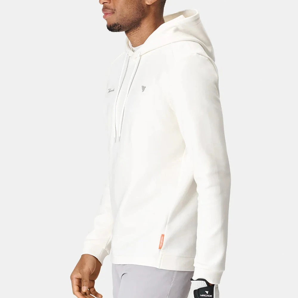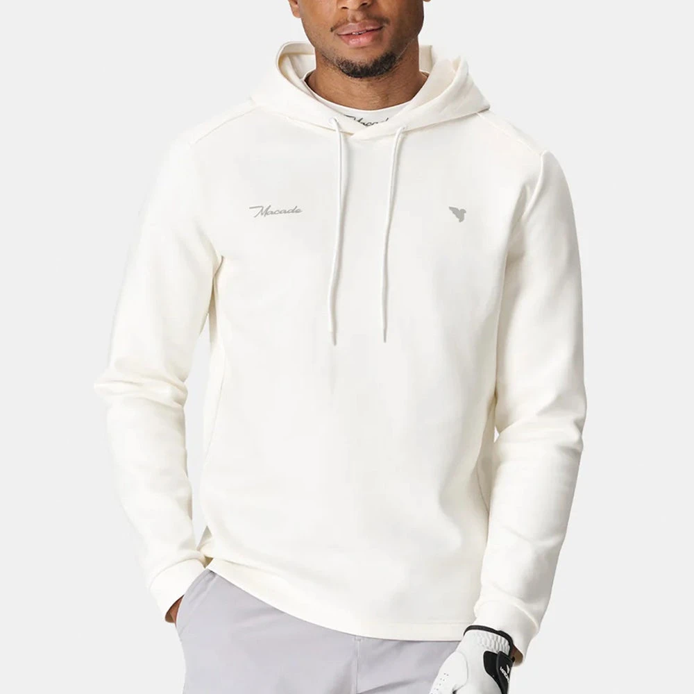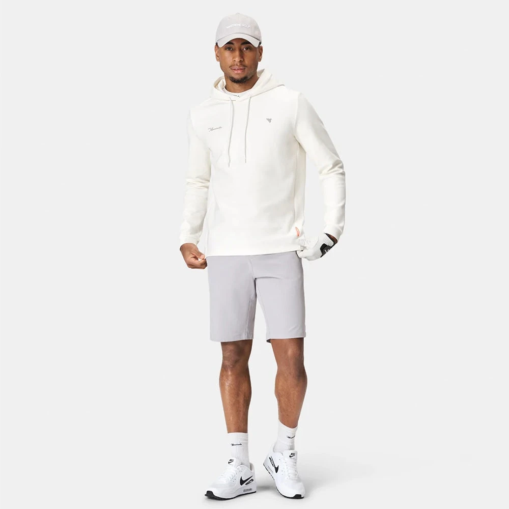 Macade Golf is one of the newest brands in the game which is worn on tour by the likes of Garrick Higgo, Lucas Bjerregaard & Alex Noren. This brand new mid layer hoodie is an easy wearing style which is ideal for layering up in cooler conditions this season. It comes complete with Macade branding on both sides of the chest, while you can also find a branded tab at the left hip for added visual interest. The fabric is soft to the touch and resembles a heavyweight tech-pique material, thus embracing a more lifestyle look and feel while retaining some key performance benefits. One of the best styles from the latest SS23 range by Macade.