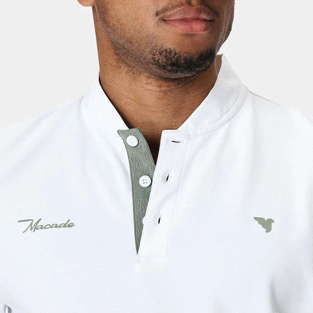 Macade Golf is one of the newest brands in the game which is worn on tour by the likes of Garrick Higgo, Lucas Bjerregaard & Alex Noren. This “Heath” polo shirt is one of our picks from the latest SS23 range thanks to the lightweight, soft & stretchy fabric – coupled with a structured, boxy silhouette for a slightly more relaxed look this season. The flat collar shape offers a progressive look which is right on trend in golf wear at the moment, while the hemline shape also allows for this style to be worn both tucked or untucked with ease.