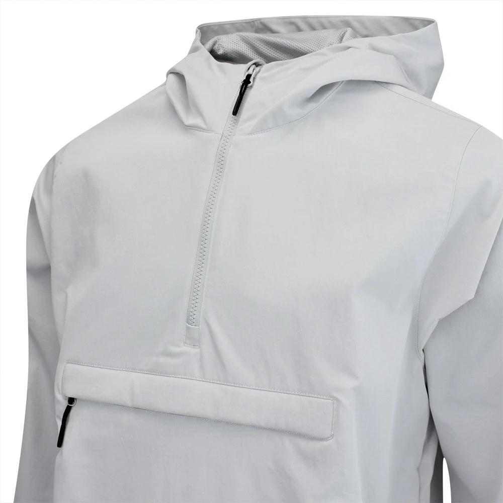Nike Golf are embracing one of the most popular trends in golf wear this season with an exceptional outerwear piece – the NK Unscripted Repel Hoodie. This quarter zip outer layer style boasts a double knit fabrication which has a high quality handle, while the woven exterior also has water repellent properties for protection in a passing rain shower. An adjustment toggle at the waist couples well with the stretchy cuffs to provide an immaculate fit, while the contoured hood design has a lower profile than normal which leaves your peripheral vision unaffected. Multiple pockets allow for even more convenience, while the additional ventilation insert at the rear allows for breathability and freedom of movement.