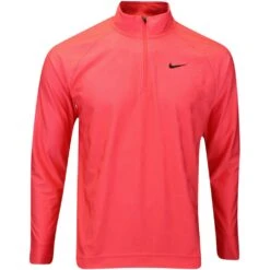 This year, Nike Golf are giving you the chance to wear the exact same styles as their top TOUR ambassadors – now including the same high contrast branding that you’ll see on your TV screens. This means that you can now find the signature Swoosh logo at both the left chest and nape of the neck, something which has proven quite rare in the world of Nike Golf in recent seasons. This quarter zip mid layer style boasts an advanced Dri-Fit ADV material which is used throughout the Nike sportswear ranges, specifically for those in high performance settings. The design features a variety of knitted textures which are positioned in strategically high heat areas for enhanced breathability and cooling throughout – with the “shadow camo” pattern having been determined by athlete generated heat maps. Fashionable and sporty – perfect for wearing both on and off the course this season.