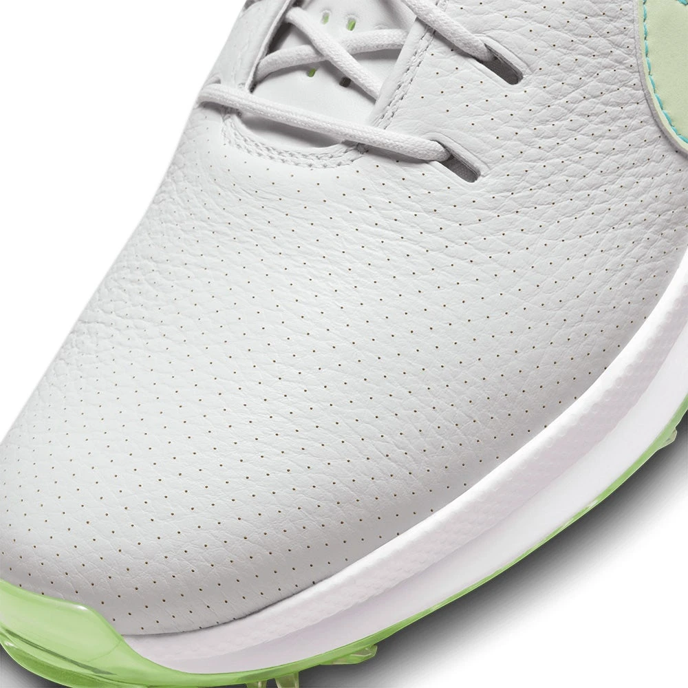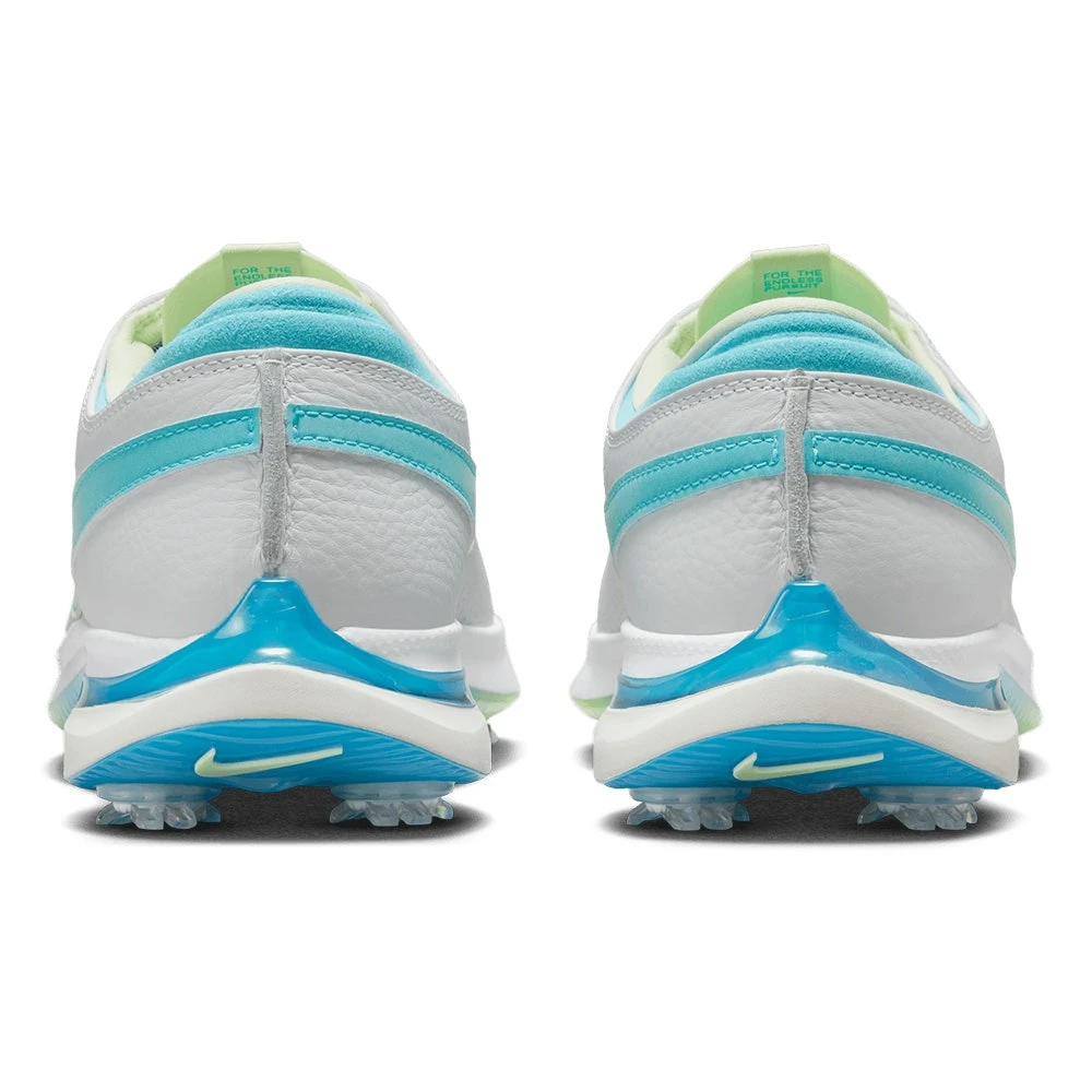 The Nike Air Zoom Victory Tour 3 golf shoe has been updated for 2023 and provides a new Tour Inspired aesthetic thanks to the solid wrap-around Nike Swoosh logos. The full grain leather upper has a soft and supple feel with a sophisticated, premium look thanks to the micro perforations to the front – while the two tone Swoosh logo is an ultra fresh look in this colour combination. A new Champs Spike System in the key 3 forefoot spike locations and Cyclone Pro Tour spikes in lateral and heel offer exceptional traction in all conditions and give your feet great grip on the ground – combining perfectly with an integrated traction pattern for outstanding gripping power. Signature REACT cushioning marries with the Air Zoom sole unit for exceptionally responsive cushioning, while a newly introduced internal strap stretches over your foot to lock you into position. Already the footwear of choice for many Nike athletes – including Rory McIlroy.