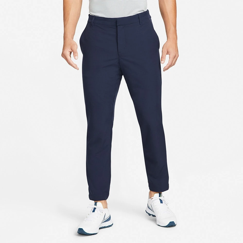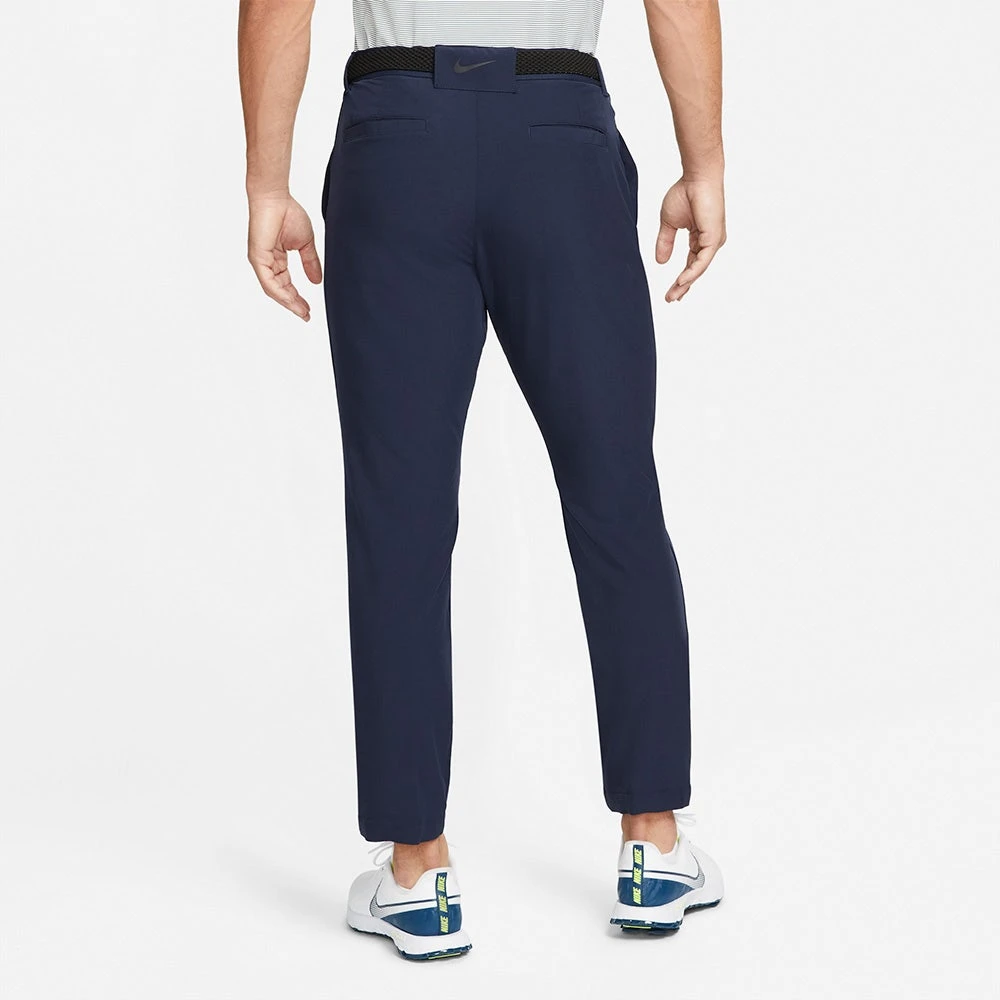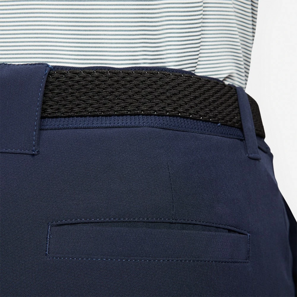 These Nike Dri-Fit Vapor golf trousers have been built to perform on the golf course and boast a stylish slim fit silhouette which is tapered in all the right areas. A lightweight, slightly textured fabric with enhanced stretch couples well with the tried and tested Dri-FIT technology to keep you cool, dry and comfortable on the inside. The slightly tacky internal shirt gripper prevents your top from riding upwards, while the added stretch through the waistband provides comfort where you need it most. A newly introduced belt slot at the rear features a prominent Nike Swoosh logo, further helping to elevate this style to new heights this season.