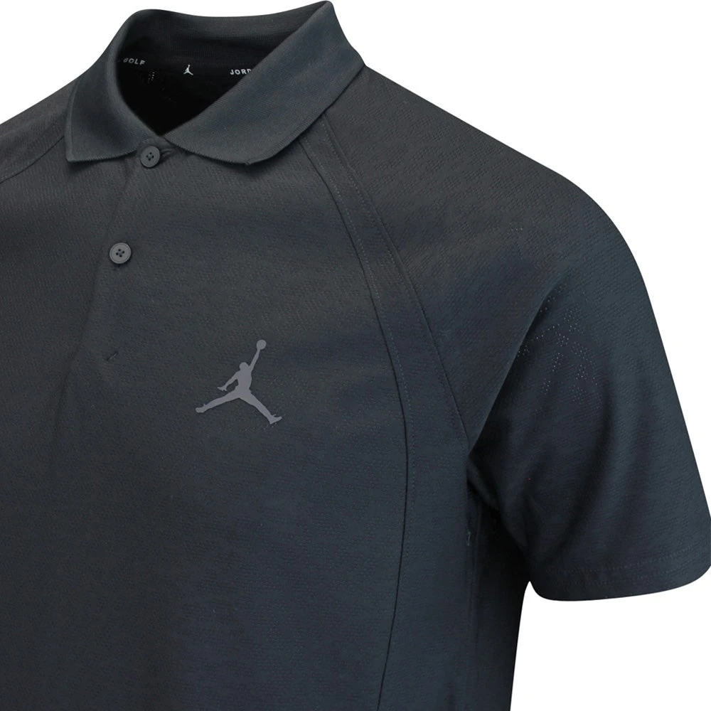 We’re excited to welcome the first ever Nike Air Jordan golf clothing & accessories collection online at Golfposer this season – the perfect way to complement your favourite Jordan sneakers on & off the course. This particular Dri Fit ADV Jacquard polo shirt is one of our top picks from the range for many reasons. The highly technical fabrication offers a lightweight, airy feel with moisture wicking performance for comfort on the golf course – complete with all over jacquard detailing in the signature “elephant” pattern for even more style appeal. The raglan sleeve design extends down the side of the body for even more freedom of movement through the golf swing, while underarm eyelets enhance breathability once more. Hem vents allow the style to be worn untucked with ease, while the silicone Jumpman logo rounds off the look perfectly. A must have pick up for any Jordan Golf fan this season.