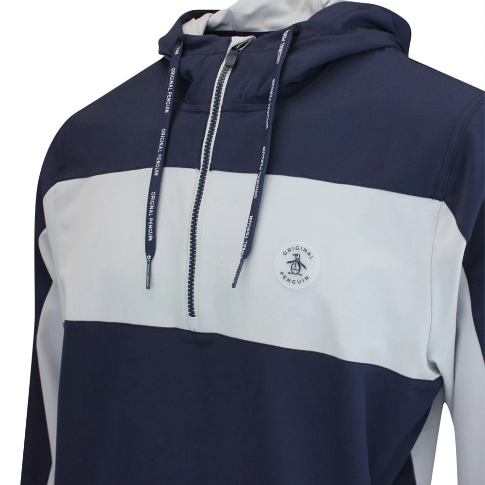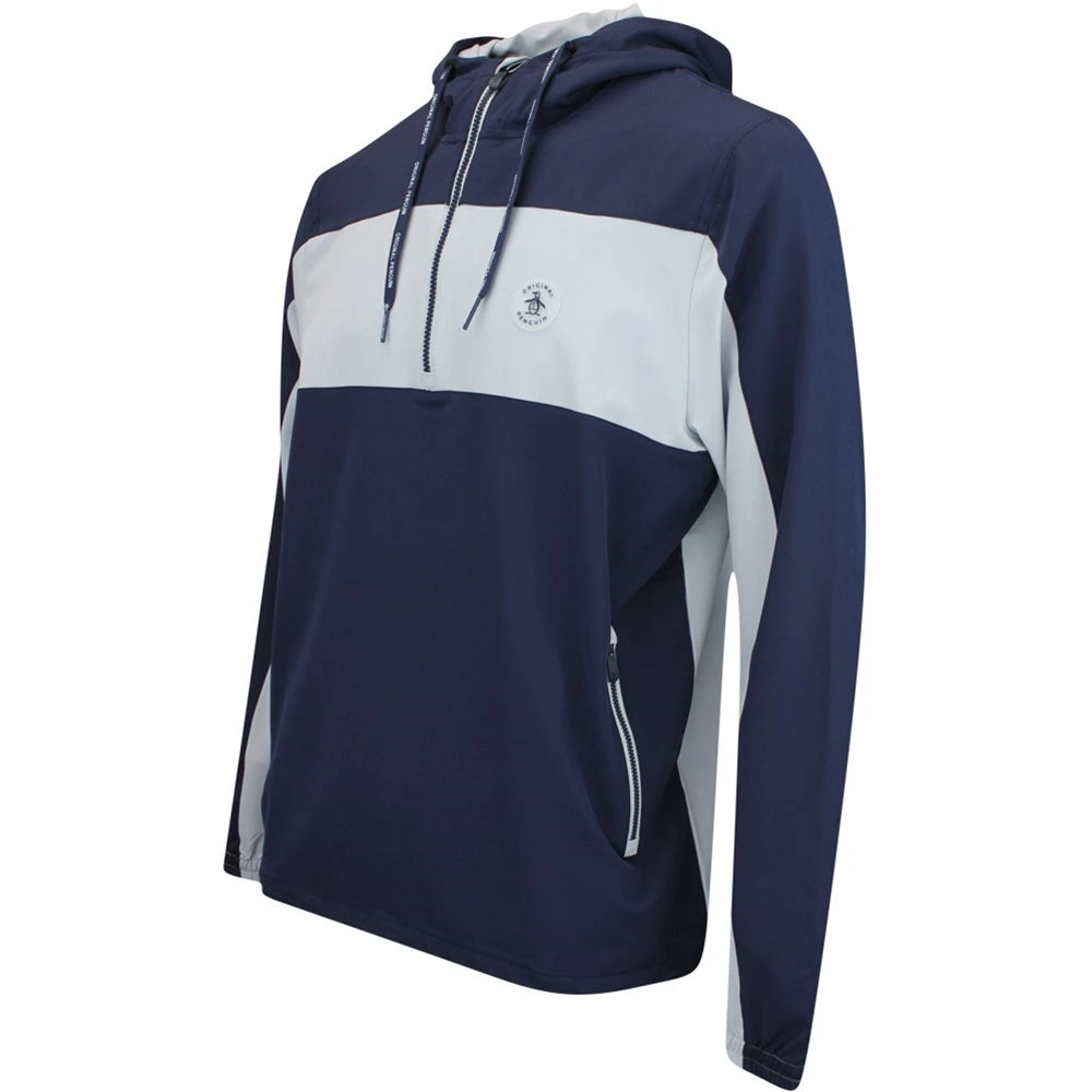 Original Penguin is one of the newest brands to arrive online at Golfposer and their crossover styles are perfect for wearing on & off the golf course this season. The OPG Colour Block Wind Jacket boasts a quarter zip hooded silhouette with a stretchy fabrication, finished with an invisible DWR coating for longevity. The dobby backed lining of the material will leave you feeling comfortable from the inside out, while the two zipped pockets enhance the convenience factor. A stylish, sporty outer layer which makes transitioning from the course to clubhouse feel effortless.