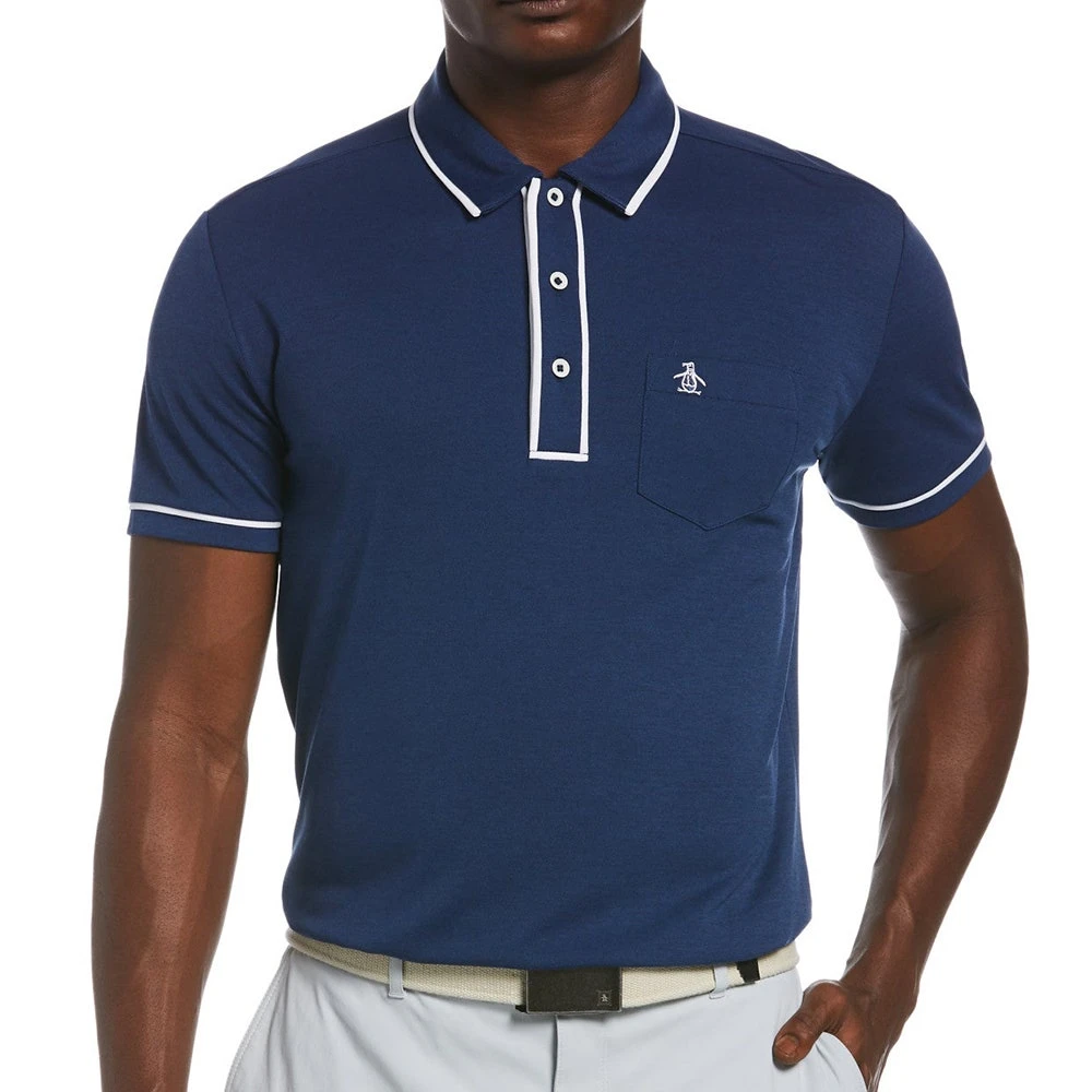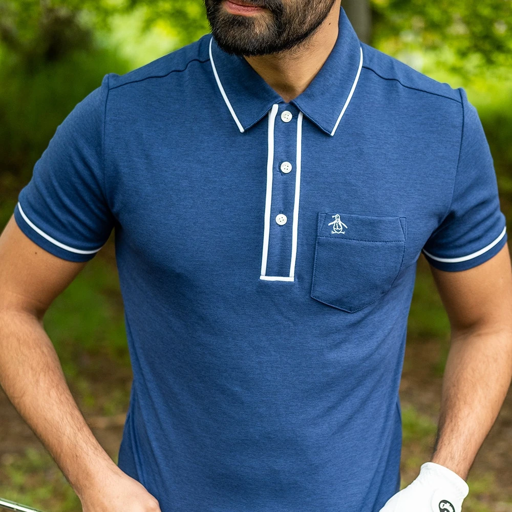 Original Penguin is the newest brand to arrive online at Golfposer and this iconic style is one of our favourite polo shirts from the new collection. It’s a technical, performance-driven style which is based on the classic “Earl” fashion silhouette – complete with contrast tipping and a left chest pocket for that signature OPG look. The soft and flexible fabric offers supreme comfort with freedom of movement and moisture wicking performance, while the slim fit silhouette and hem vents allow this style to be worn untucked with ease. The Pete logo is embroidered on top of the pocket, rounding off one of the best wardrobe staples for wearing both on and off the golf course this season.