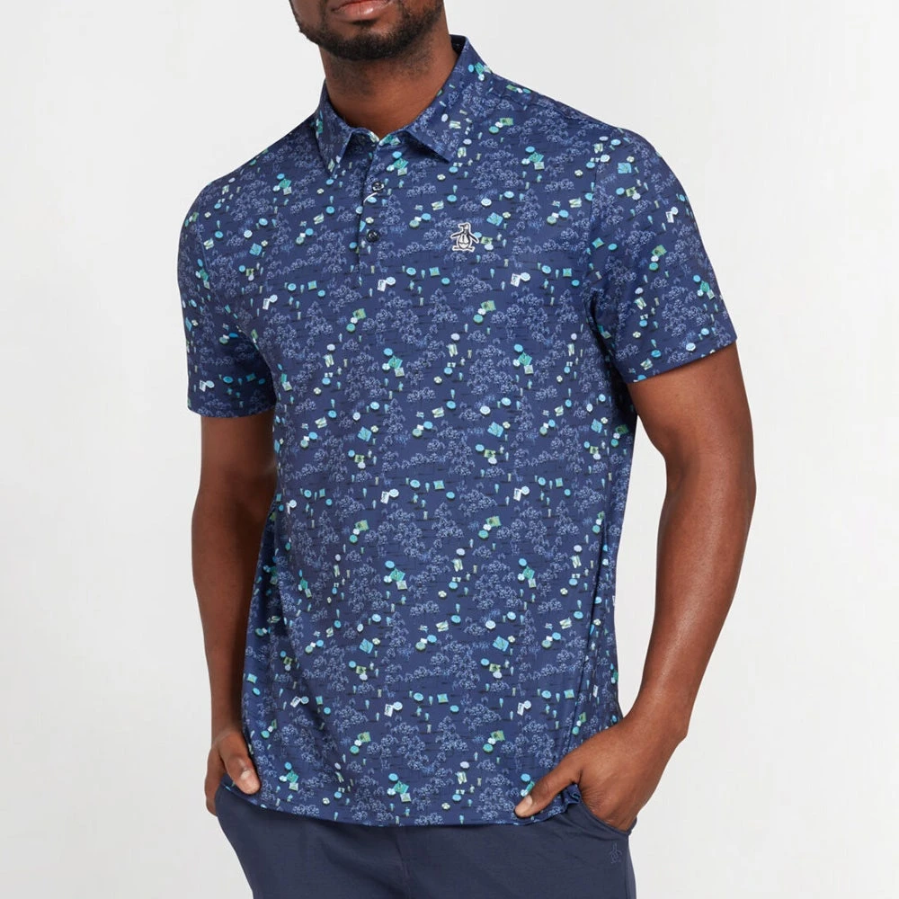 Original Penguin is one of the newest brands to arrive online at Golfposer and this eye catching style is one of our favourite polo shirts from the new collection. It’s a technical, performance-driven style which embraces an all over motif print pattern – named “Pete in the Park” and particularly fashionable in this colour combination. The soft and flexible fabric offers supreme comfort with freedom of movement and moisture wicking performance, while the Heritage Fit silhouette and hem vents allow this style to be worn untucked with ease. The “Pete” logo is embroidered at the left chest and helps to round off another outstanding polo shirt from Original Penguin.