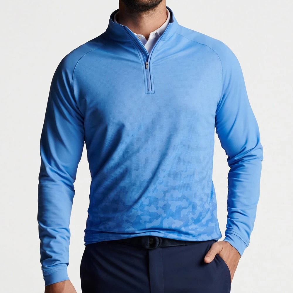 This performance mid layer sweater comes from the Peter Millar golf clothing collection and has been designed for wearing both on and off the course with ease. The soft jersey fabric has a high degree of stretch with moisture wicking capabilities, while the quarter zip silhouette is a timeless design which is perfect for layering your look. Warmth, comfort and performance are all assured with this tried and tested mid layer pullover from Peter Millar – newly updated with a gradient camouflage print pattern.