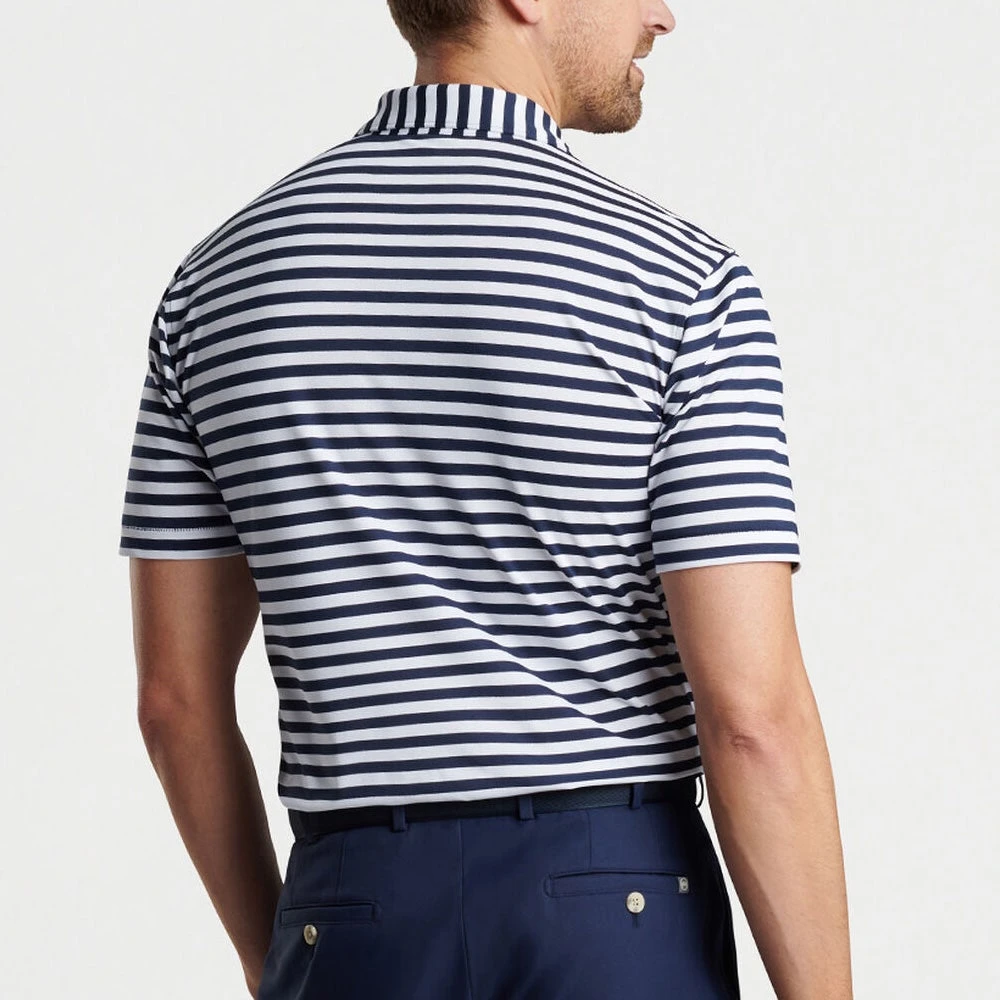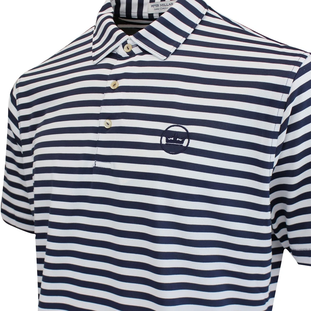 Peter Millar is one of the newest brands to arrive online at Golfposer and we love their line up of polo shirts for Autumn/Winter ’23. This particular style offers a fresh look thanks to the all over, two tone stripe pattern – while you can also find a tour sized Crown logo embroidered upon the left chest. The soft & flexible performance pique fabric features a high degree of stretch for maximum freedom of movement, while the moisture wicking nature of the fibres will leave you feeling cool and dry on the inside too. Another top choice that will look great as part of any Peter Millar outfit this season.