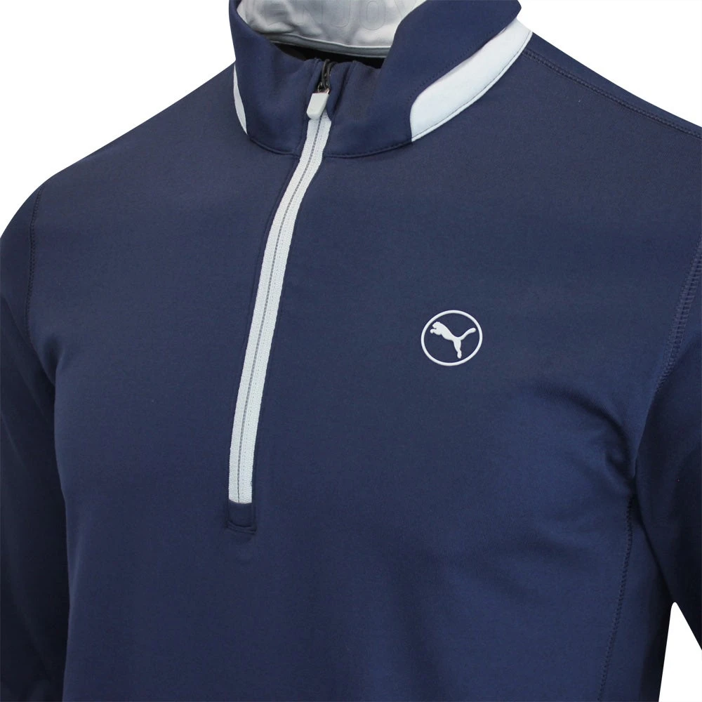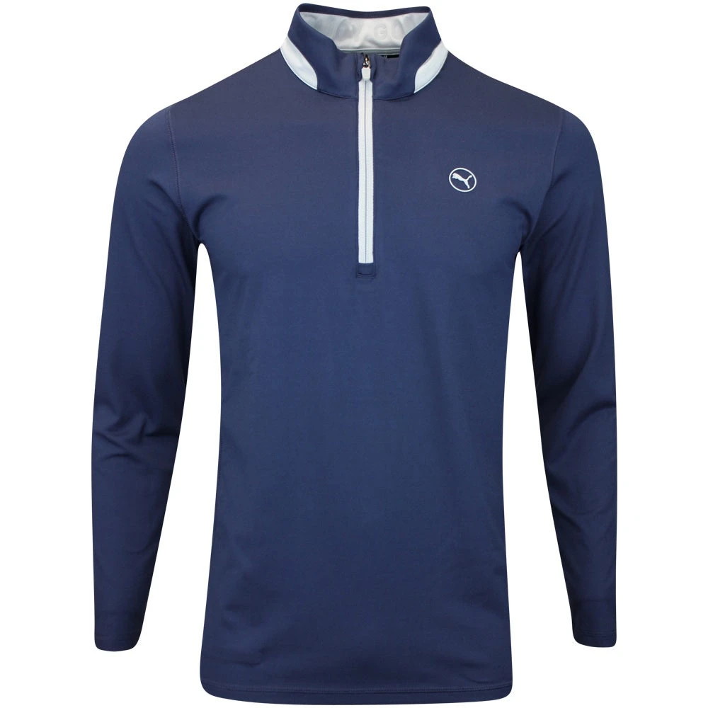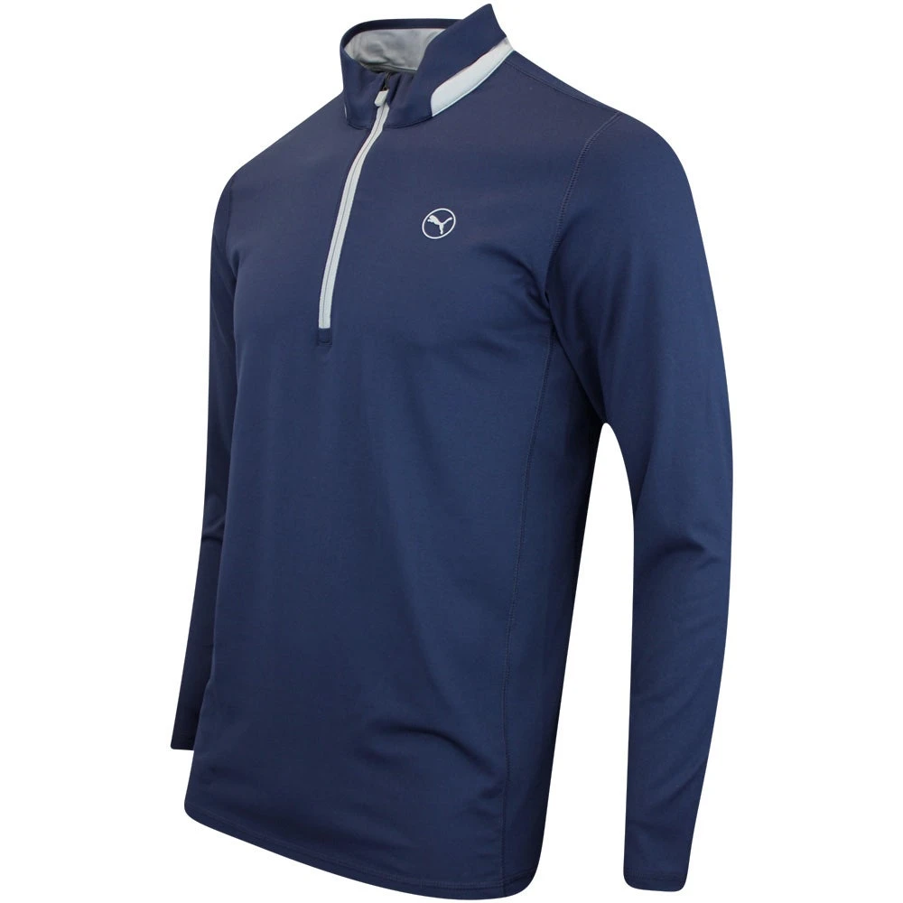 This sporty PUMA quarter zip pullover is a brand new mid layer style which will suit perfectly when cooler conditions descend upon the golf course. The soft & flexible fabric provides all of the usual performance benefits including moisture wicking breathability and four way stretch, while the iconic Cat logo is also located at the left chest for a signature look. The colour block design adds timeless style appeal – a look which is especially effective in this seasonal colour combination.