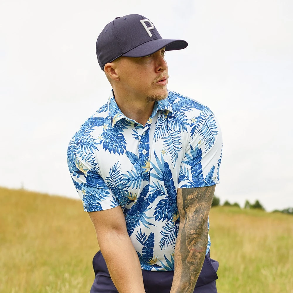 PUMA Golf always bring some serious heat with their range of polo shirts and this new Cloudspun “Aloha” polo shirt style does just that. It features an all over tropical floral print which looks ultra fresh in this colour combination – helping to make this one of our favourite PUMA styles in recent times. The lightweight and moisture wicking “Cloudspun” fabric will feel great against the skin, while the high degree of added stretch will ensure maximum freedom of movement is provided during performance. Curved hem vents also allow for this style to be worn either tucked or untucked, helping to make this an easy wearing & versatile polo shirt option.