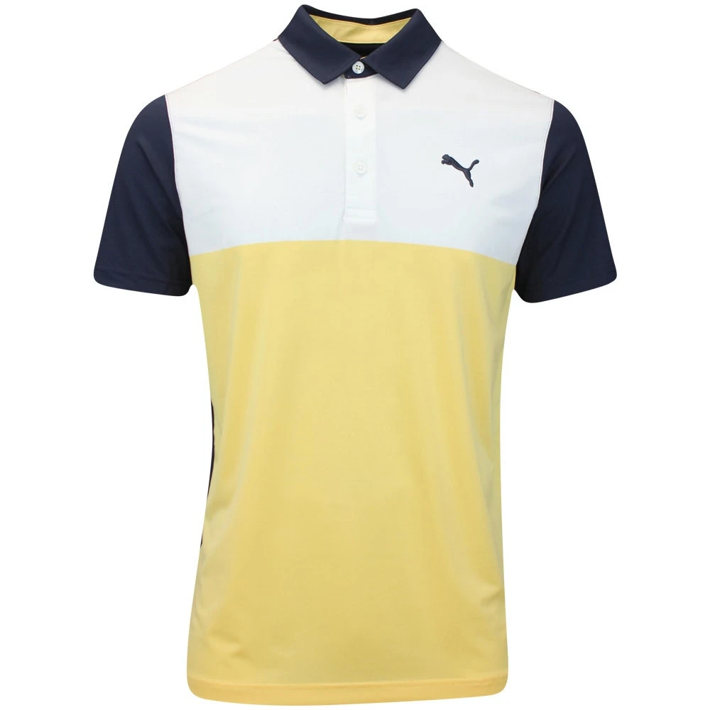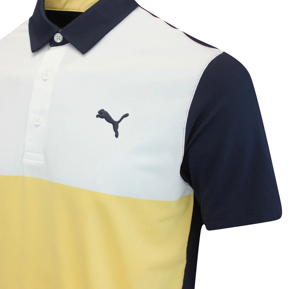 PUMA Golf are always ready to inject some vibrant colours into their apparel line up and this Cloudspun Colourblock style does just that. It features a timeless colour blocked aesthetic which is brought to life by this ultra fresh colour combination – complete with the PUMA Cat logo located at the left chest. The lightweight and moisture wicking “Cloudspun” fabric will feel great against the skin, while the high degree of added stretch will ensure maximum freedom of movement is provided during performance. Curved hem vents also allow for this style to be worn either tucked or untucked, helping to make this an easy wearing & versatile polo shirt option.