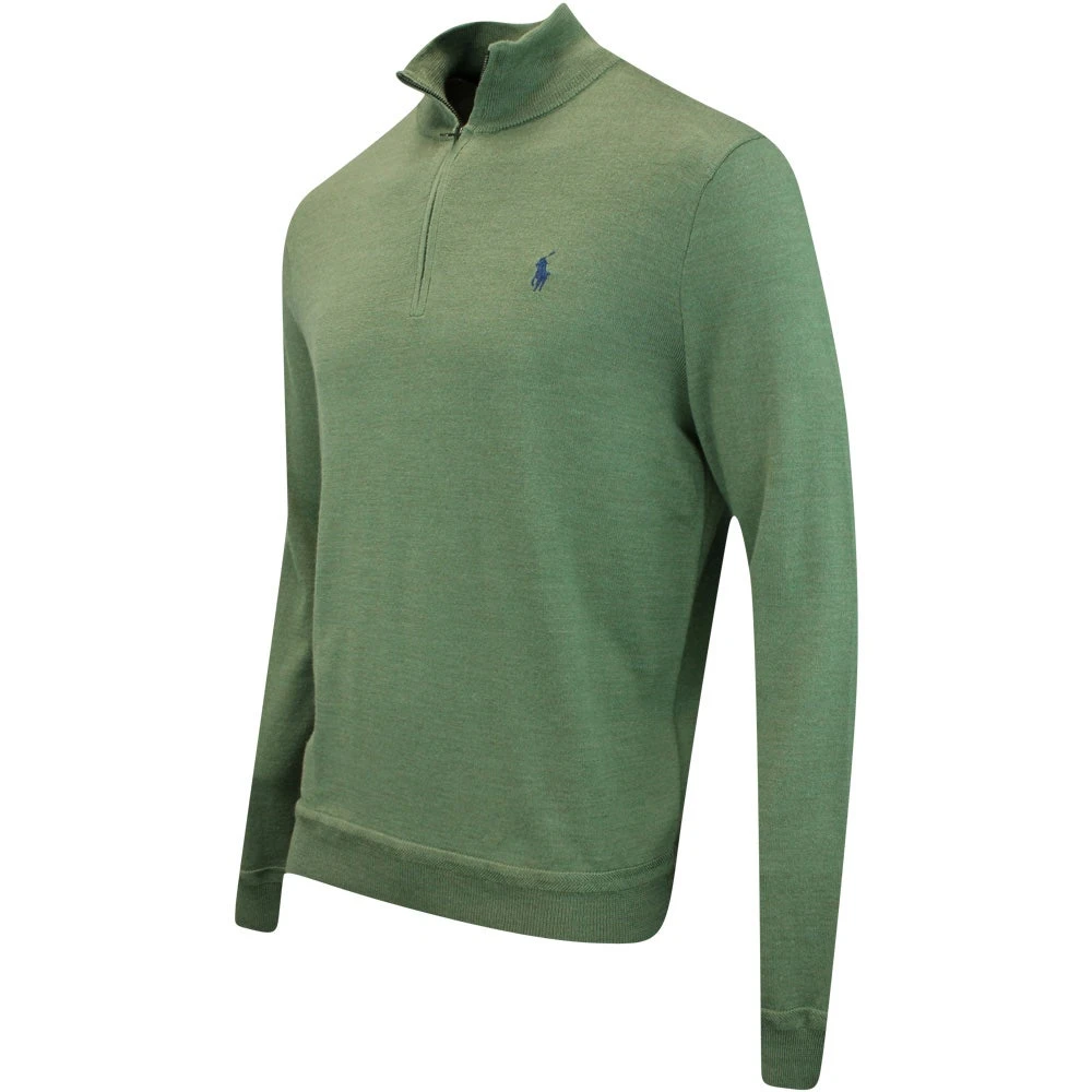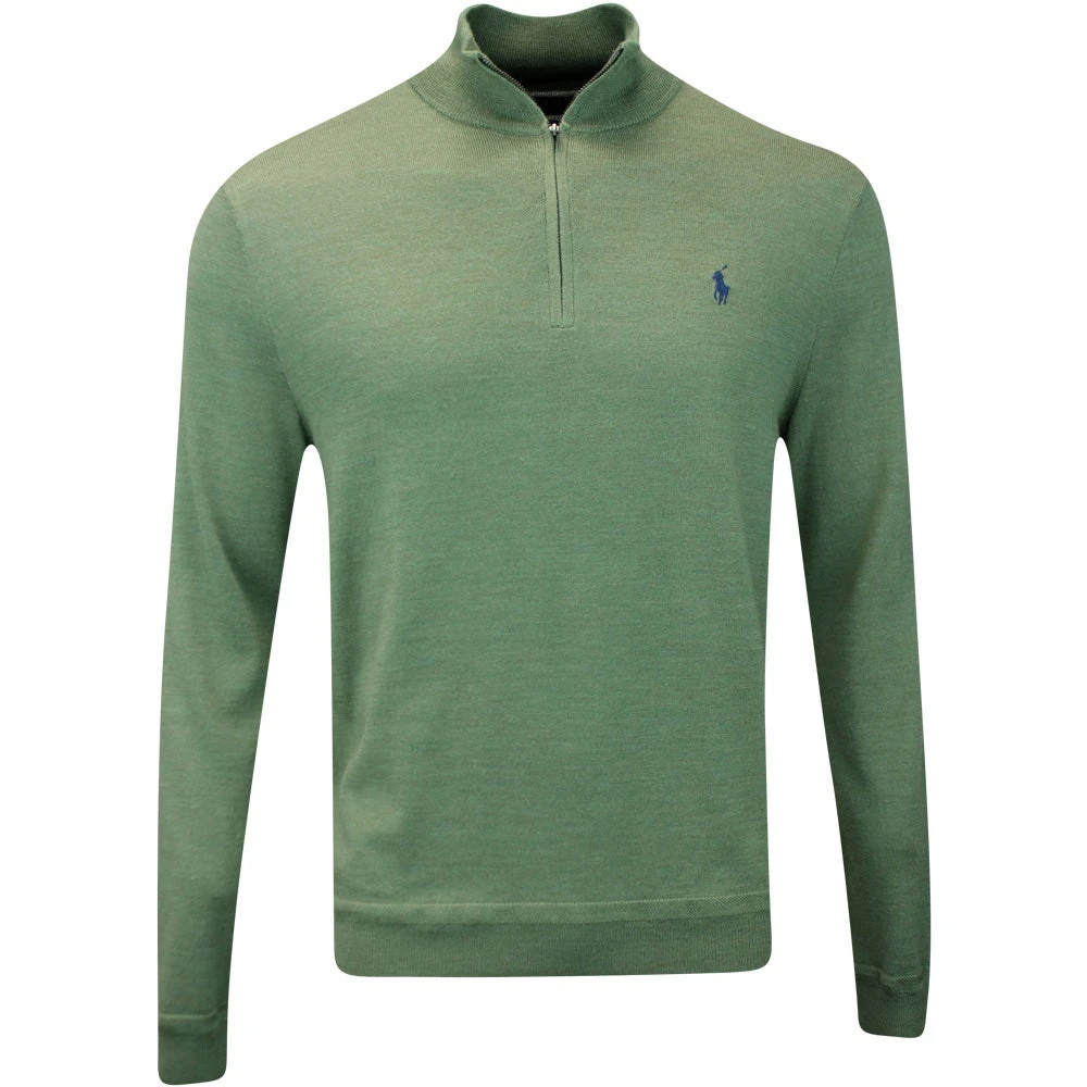 The new POLO range by Ralph Lauren has arrived and now includes this ultra smart quarter zip pullover which is ideal for wearing on and off the golf course. The high quality “tech wool” fabric has an ultra soft handle which feels great to wear, while the naturally high degree of stretch ensures increased freedom of movement through the golf swing. The iconic Pony logo is located at the left chest, while the lightly ribbed cuffs & hemline provides an excellent fit. Another top class wardrobe staple from Ralph Lauren.