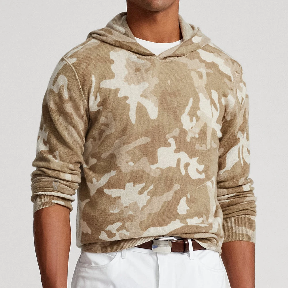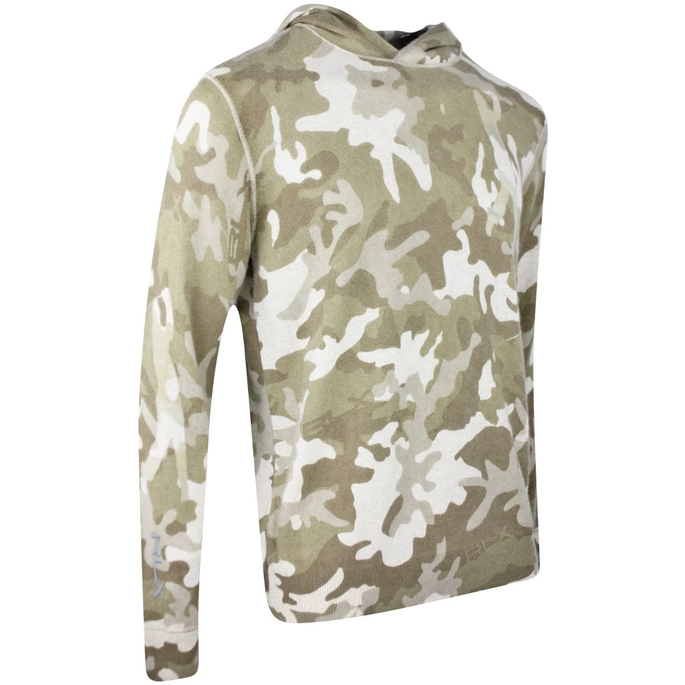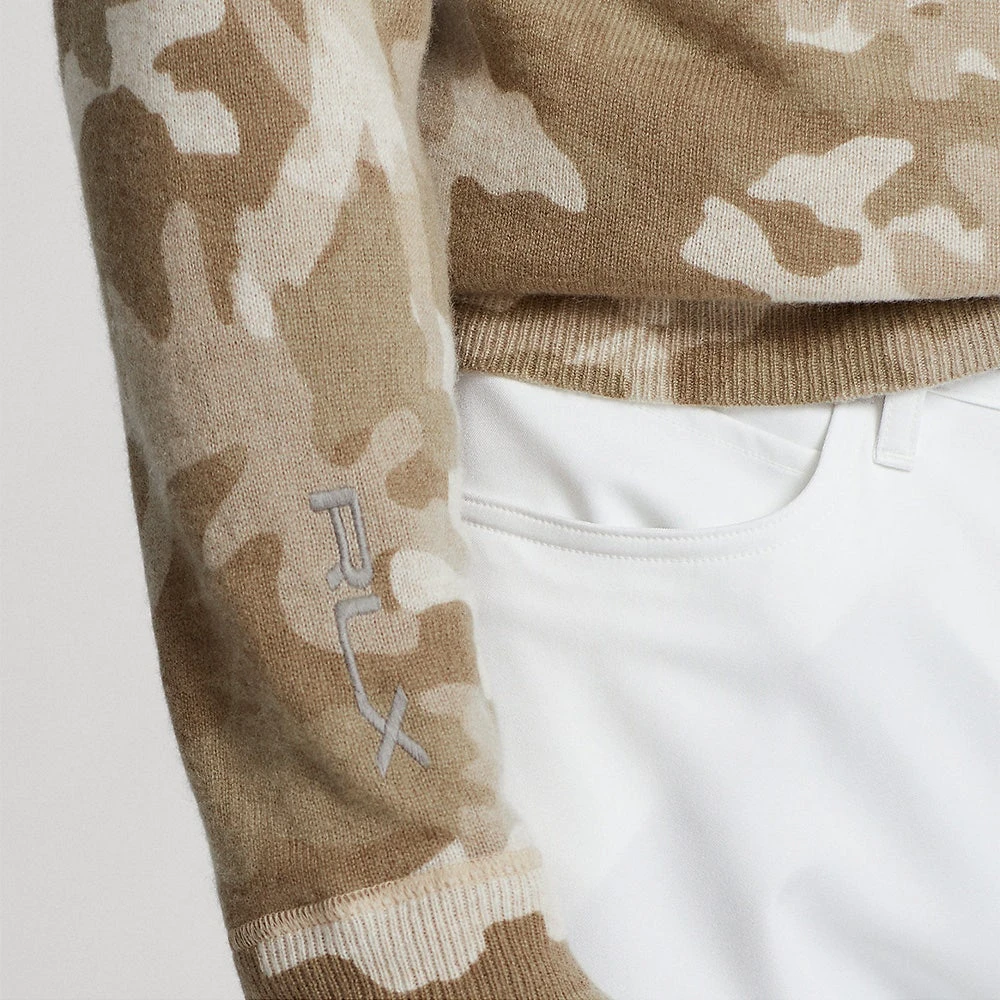 RLX Cashmere Hoodies became one of the most sought after styles during the Ryder Cup 2020, having been worn by Team USA en route to their victory at Whistling Straits. This in-season style is finished with an all over “Player Camo” effect which elevates the fashionable look once more, while the subtle RLX logo is embroidered at the right cuff. The low profile hood is made from the same cashmere fabric which means it sits neatly with minimal distraction, while the lightweight drawcord is also made from the same fabric. The fit on this piece is a particular highlight thanks to the knitted structure with naturally high stretch levels, while the soft and luxurious handle of the cashmere wool fabric is exactly how you would expect it to be.