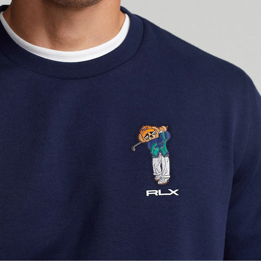 We love seeing the iconic “POLO Bear” logo within the Ralph Lauren golf wear line up – a character which was first introduced by the brand in 1991. It has taken on many guises over the years but this time the POLO bear looks like one of the coolest golfers around – posing with his aviator sunglasses, green RL jacket, bright white pants & orange cap in a typically preppy RL fashion. The crew neck sweater itself is features a “magic fleece” fabrication which has been designed for performance with excellent moisture wicking properties, while the soft and stretchy jersey exterior leaves you feeling free to move through the swing with ease. A lightly ribbed hemline and cuffs ensures an excellent fit. A fresh take on the RL Bear golf sweater which is now complete with RLX branding beneath the Bear Logo – a welcome styling update for AW23.